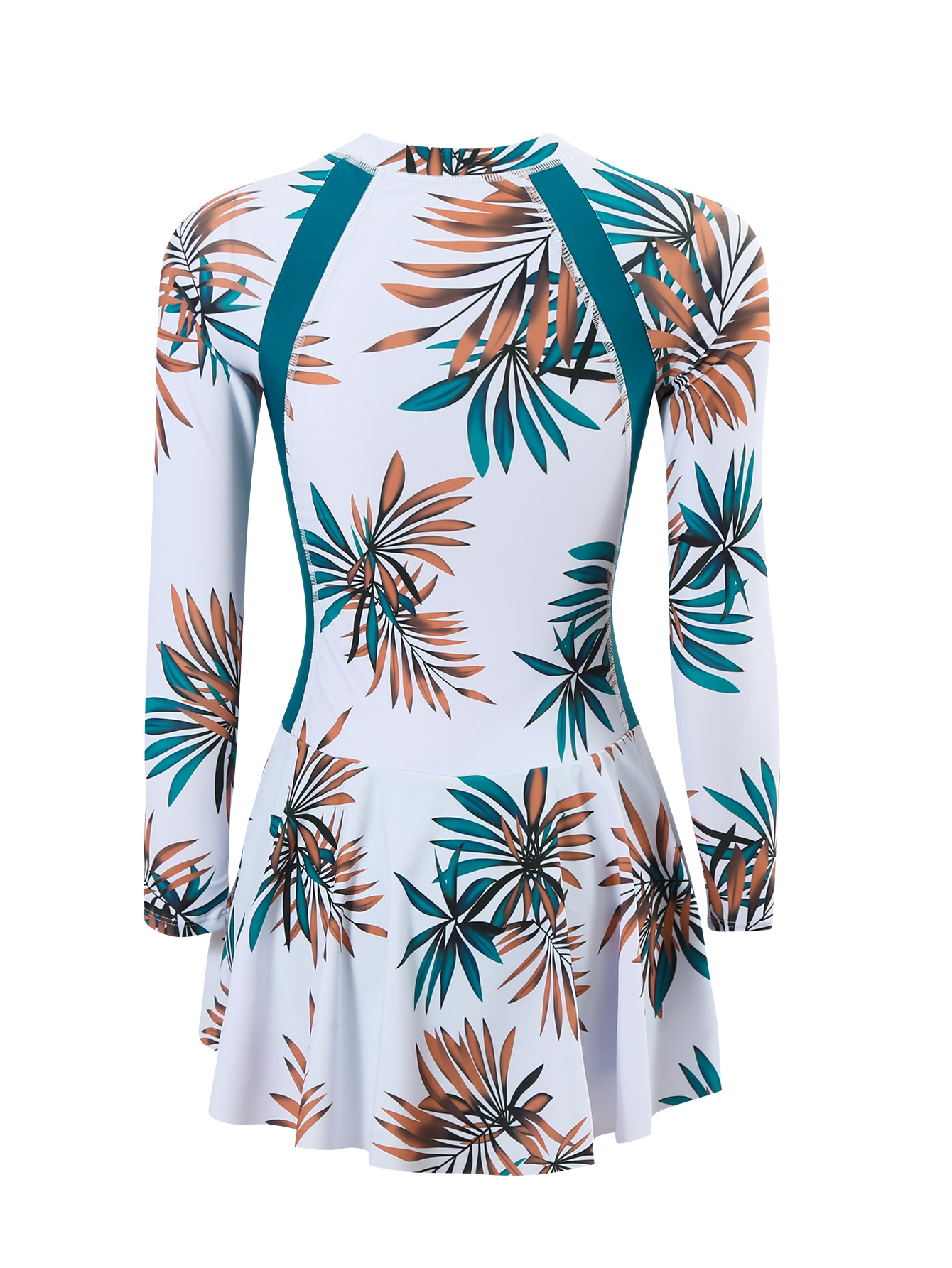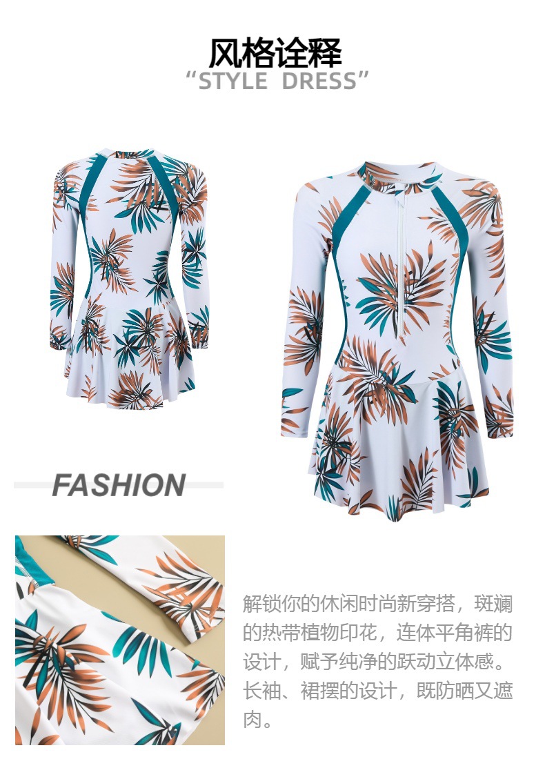 국경 간 새로운 유럽과 미국의 지퍼 디지털 인쇄 식물 인쇄 긴팔 원피스 스커트 수영복 도매스토어 가기