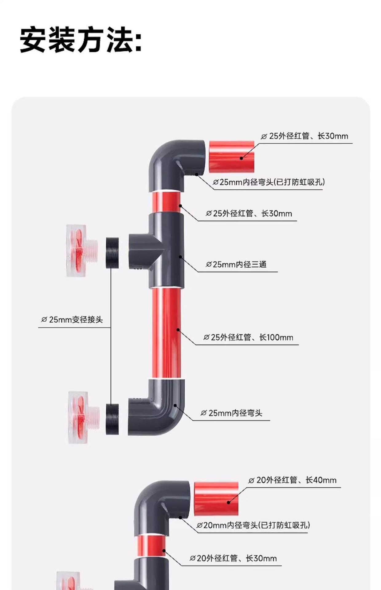 • 파이프 피팅 팬 스파우트 1세트(내경 20mm에 적합)