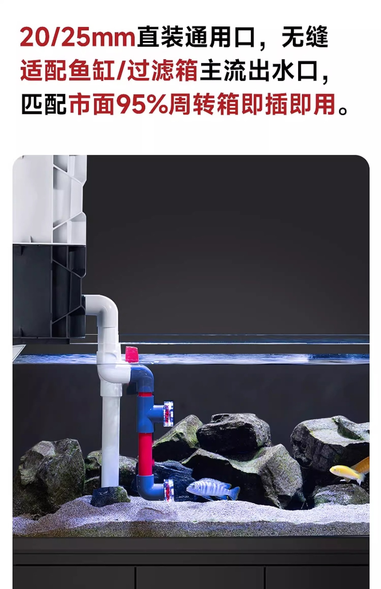 Yee 수조 배수구 수정 액세서리 측면 필터 상단 후면 필터 다기능 회전식 노즐 물 배관 인터페이스
