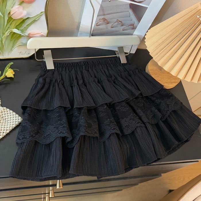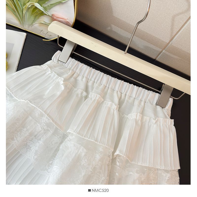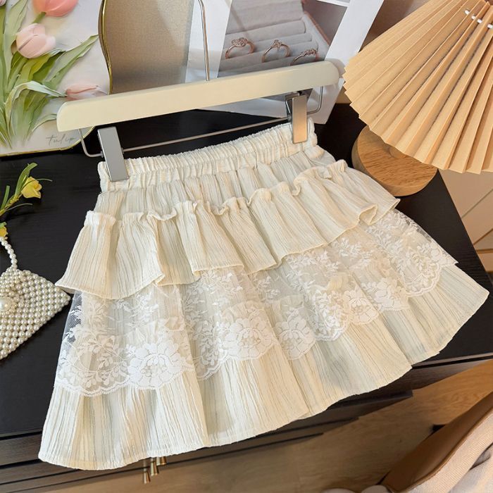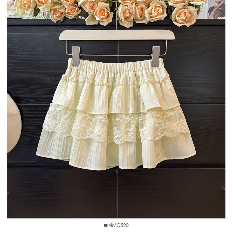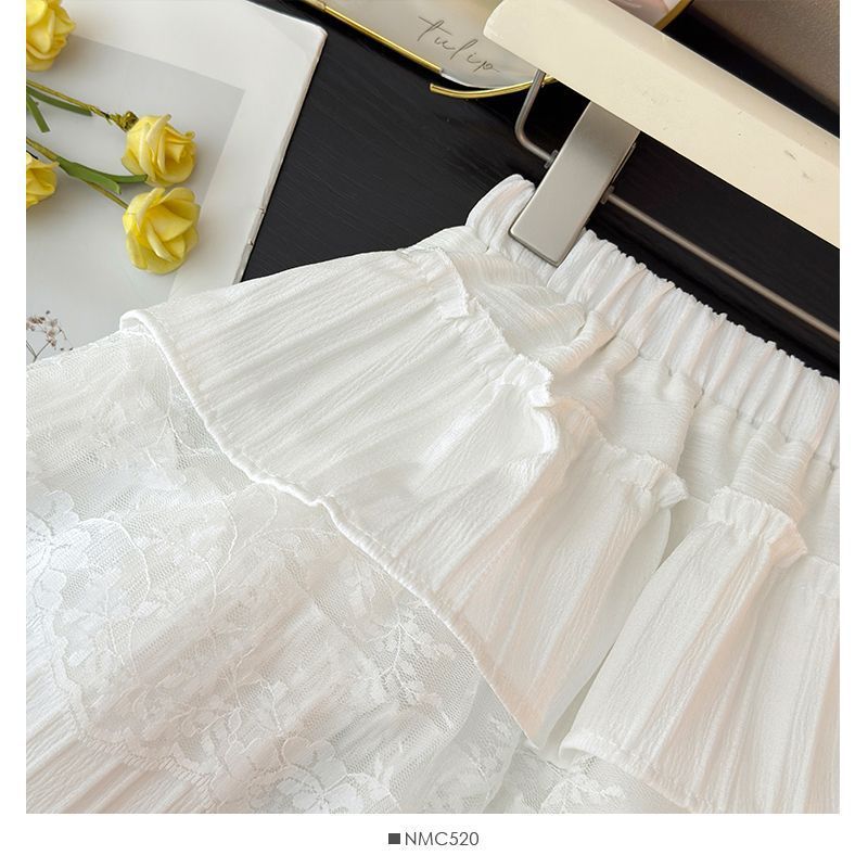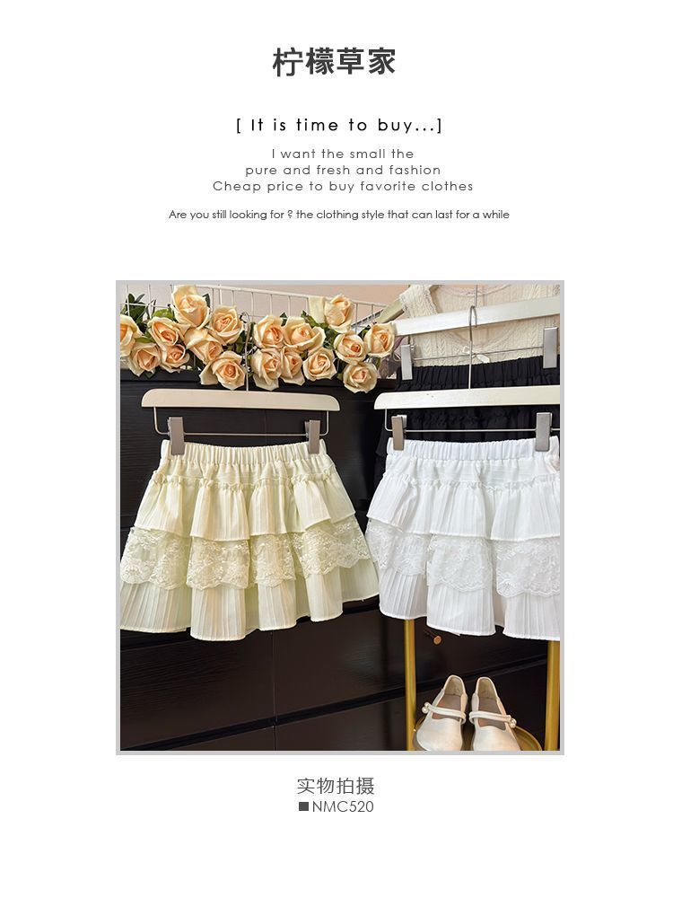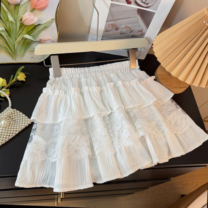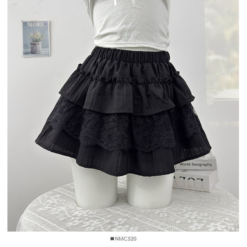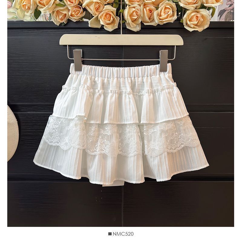 한국 달콤한 여자 레이스 스플 라이스 케이크 짧은 치마 여성 봄 흰색 노출 방지 하이 웨이스트 푹신한 공주 스커트
