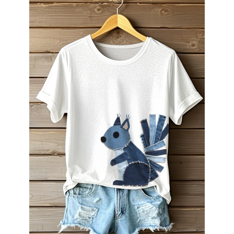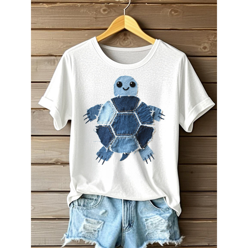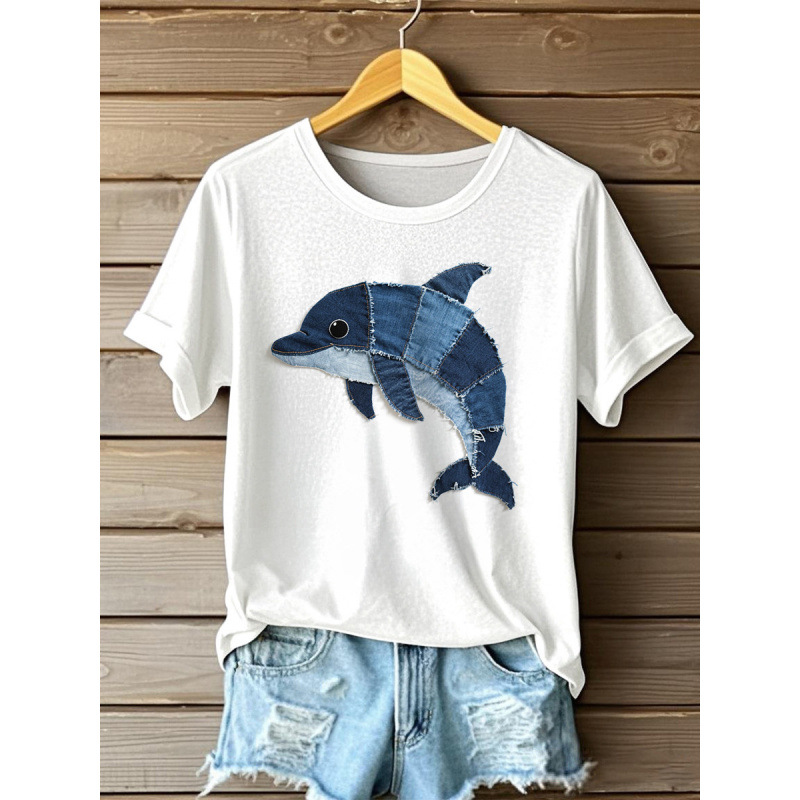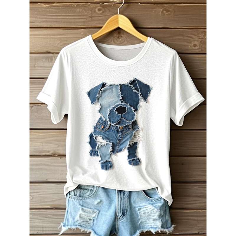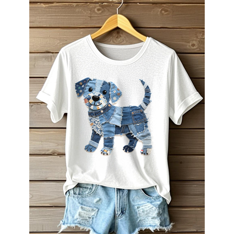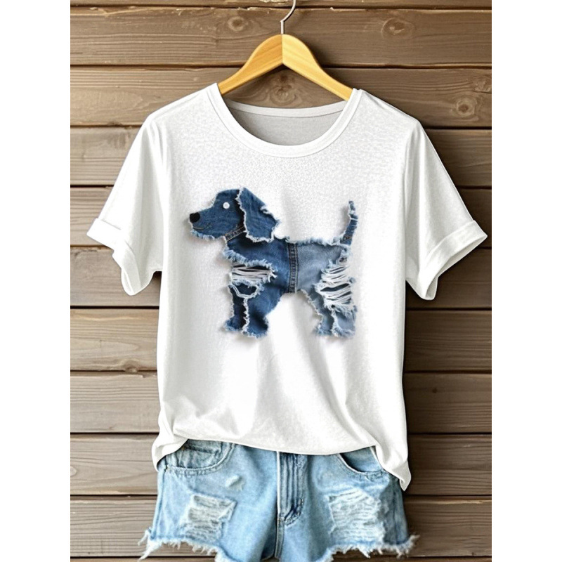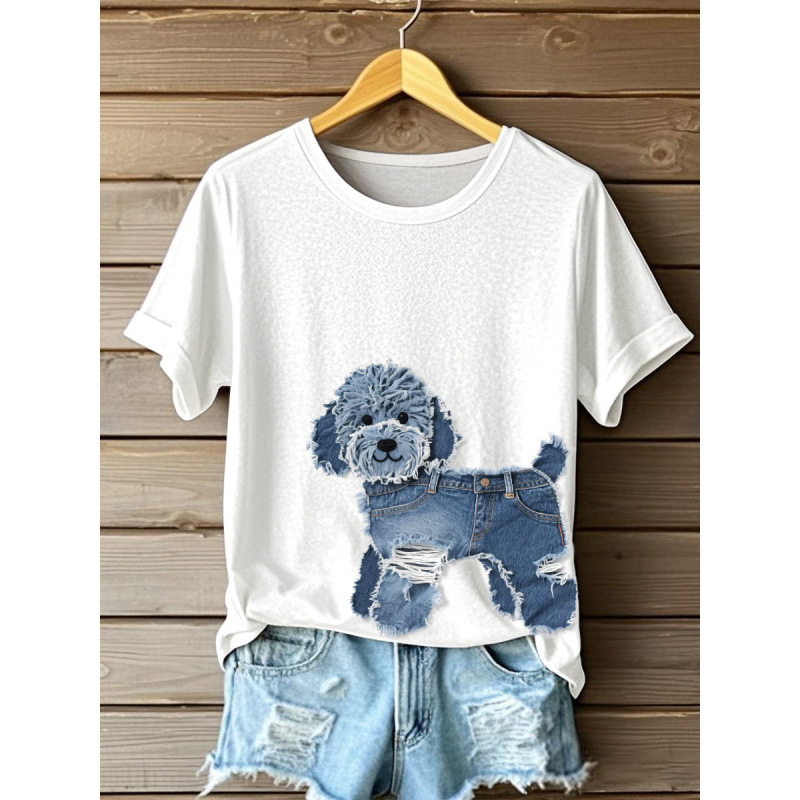 반팔 티셔츠 인기 대외 무역 2025 대외 무역 핫 세일 디지털 인쇄 여성용 라운드 넥 탑 도매 D 제작스토어 가기