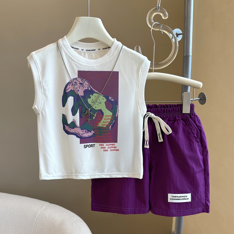 여름 신작 아동복 민소매 탑 반바지 세트 한국식 여름 얇은 통기성 투피스 세트 드롭 배송