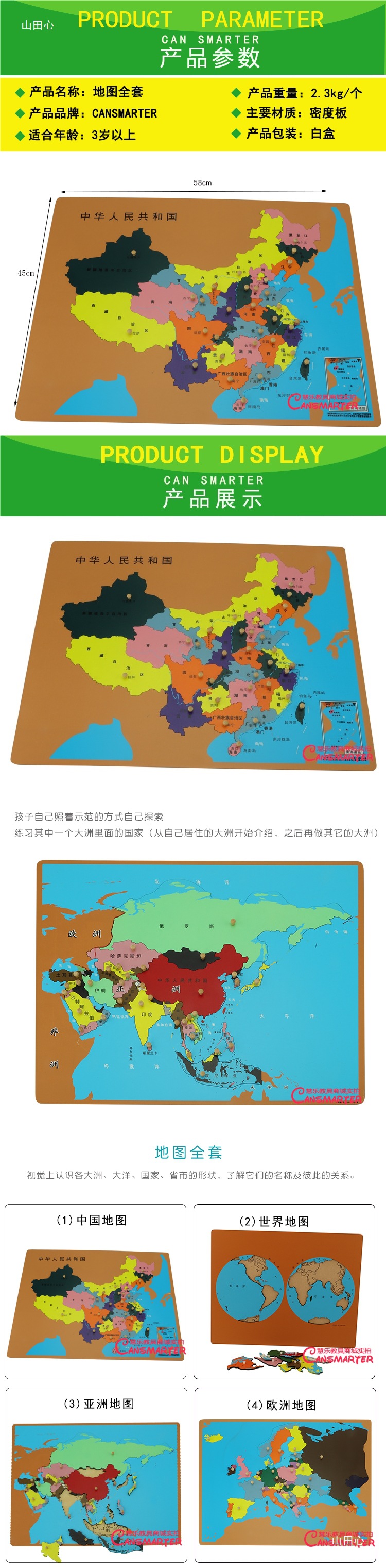 몬테소리 과학 지리 교육 보조 아시아 퍼즐 패널 랙 수륙 조기 교육