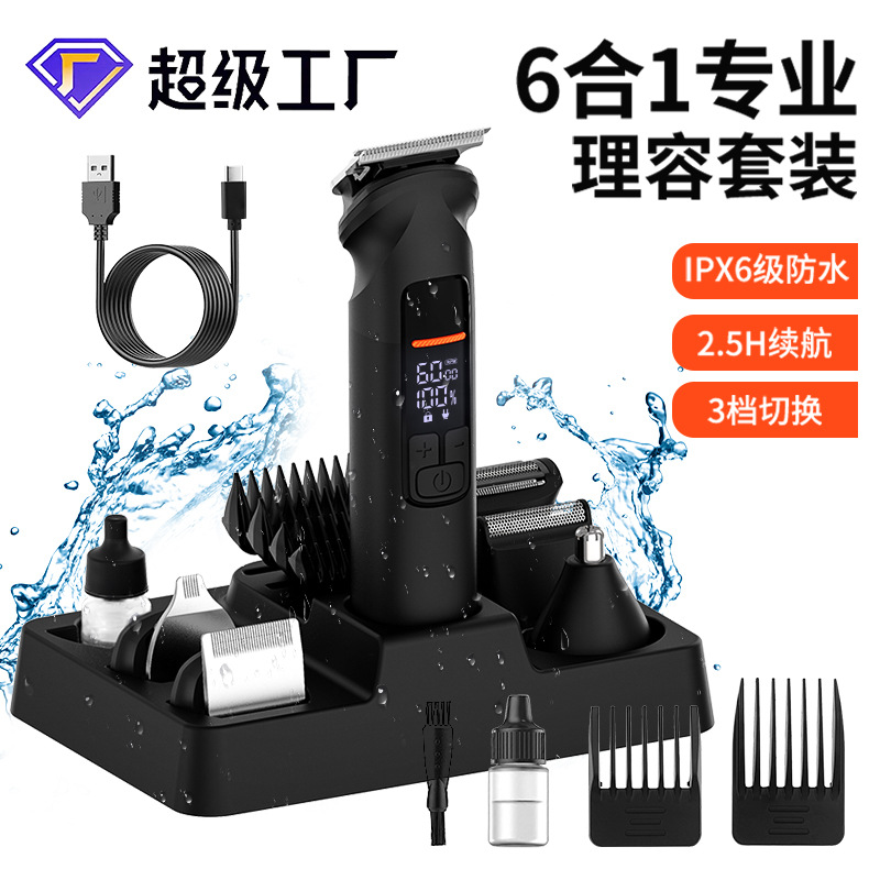 새로운 6-in-1 다기능 전기 머리 깎기 세트 면도기 남성용 전기 머리 깎기 면도기 코 헤어 트리머