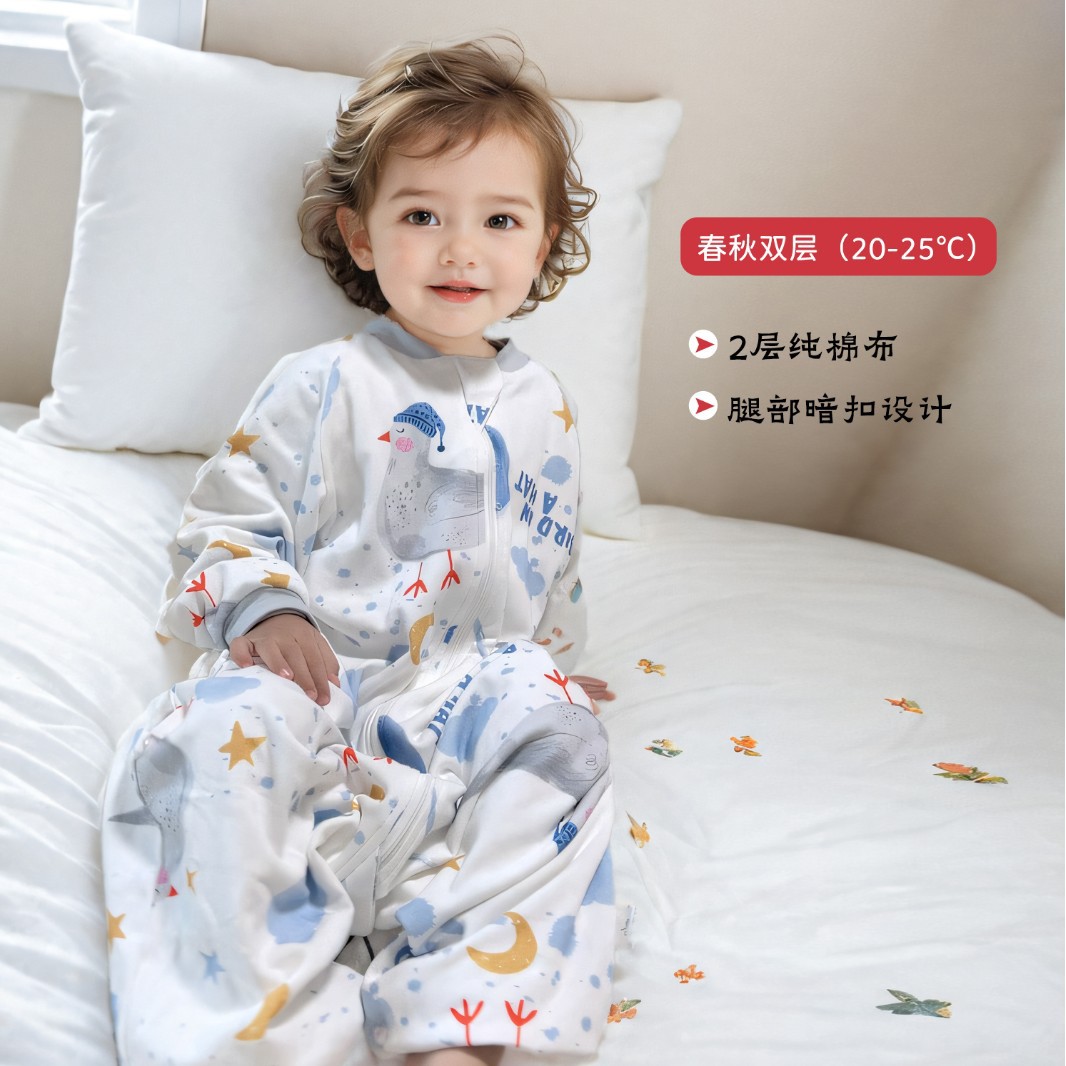 침낭 일체형 잠옷 봄 여름 다리가 벌어진 아기 침낭 가을 겨울 순면 봄 가을 어린이 안티 킥 아기 사계절