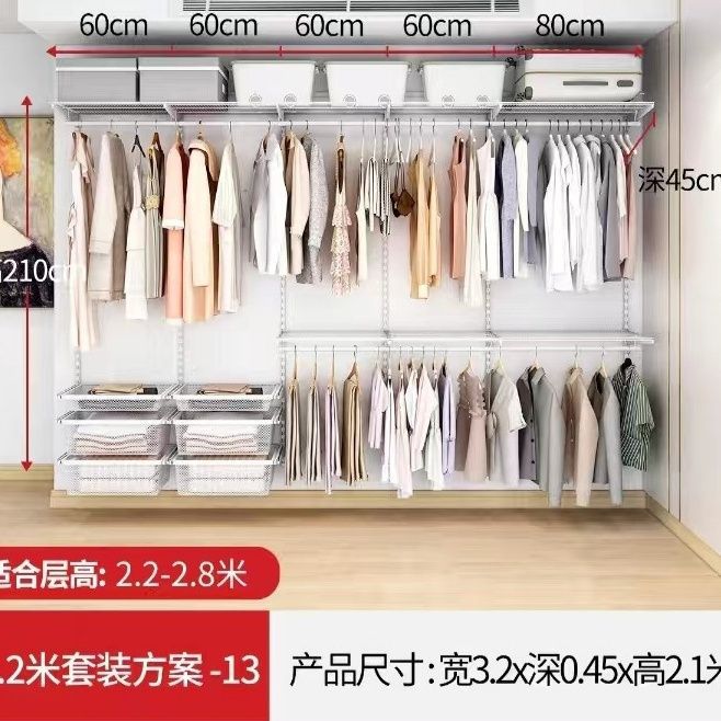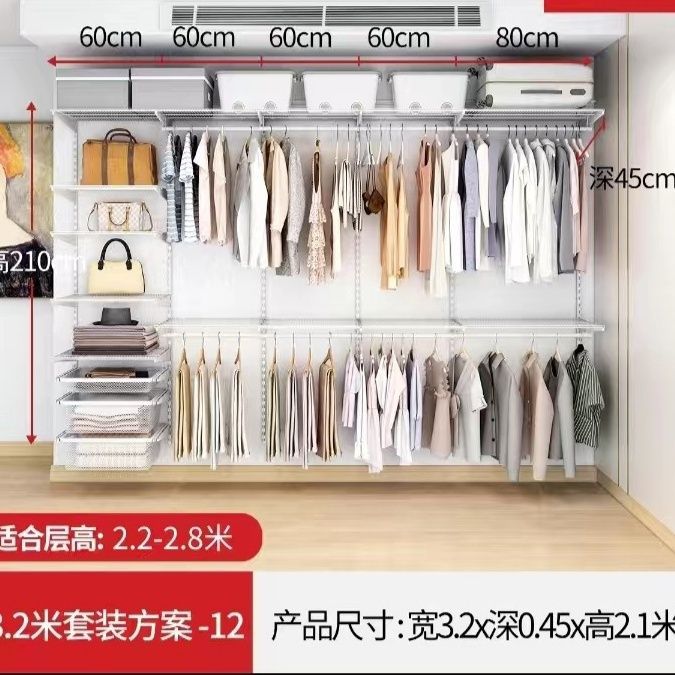 3.2 침실 옷장용 Bajiku 수납 선반, 간단한 단일 강화 전체 금속 옷장, 자유로운 조합스토어 가기