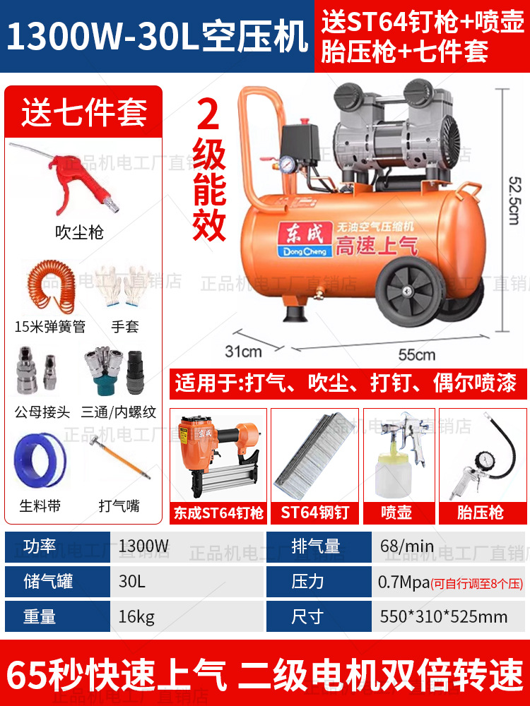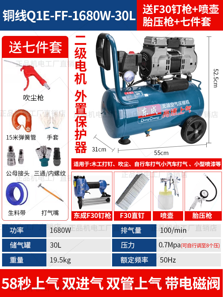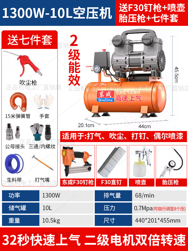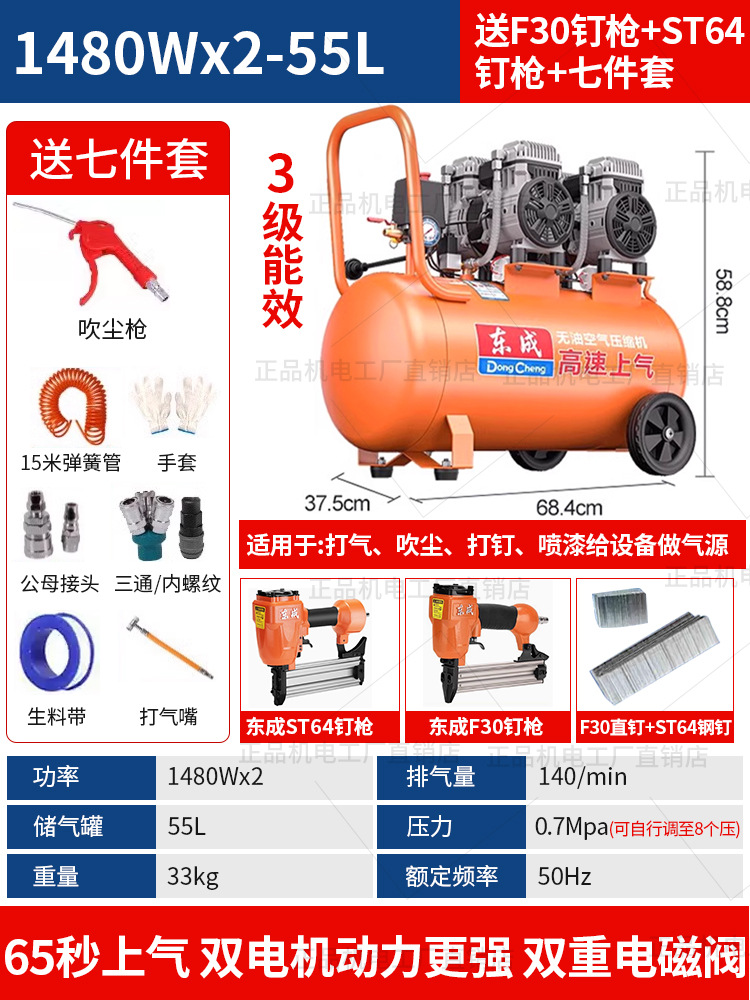 • 동성 정품, 가품, 벌금 10, 30년 브랜드 평판 - 55리터 [1480WX2-65초 공기 공급] 이중 공기 흡입구 + F30 스트레이트 네일건 + 7종 세트