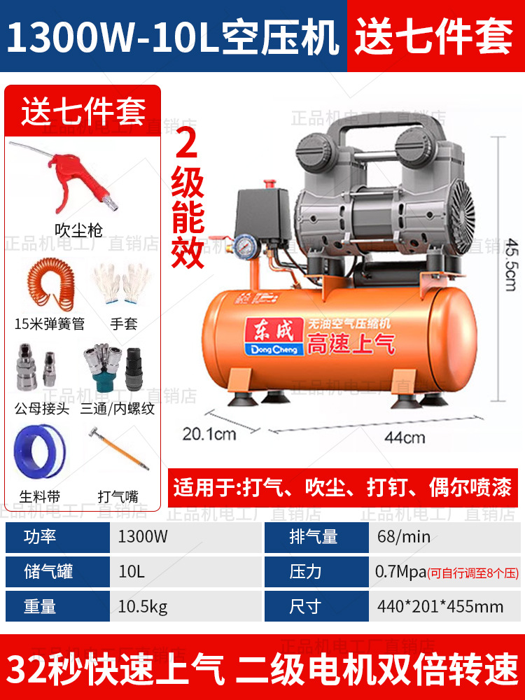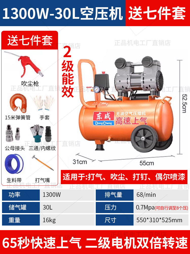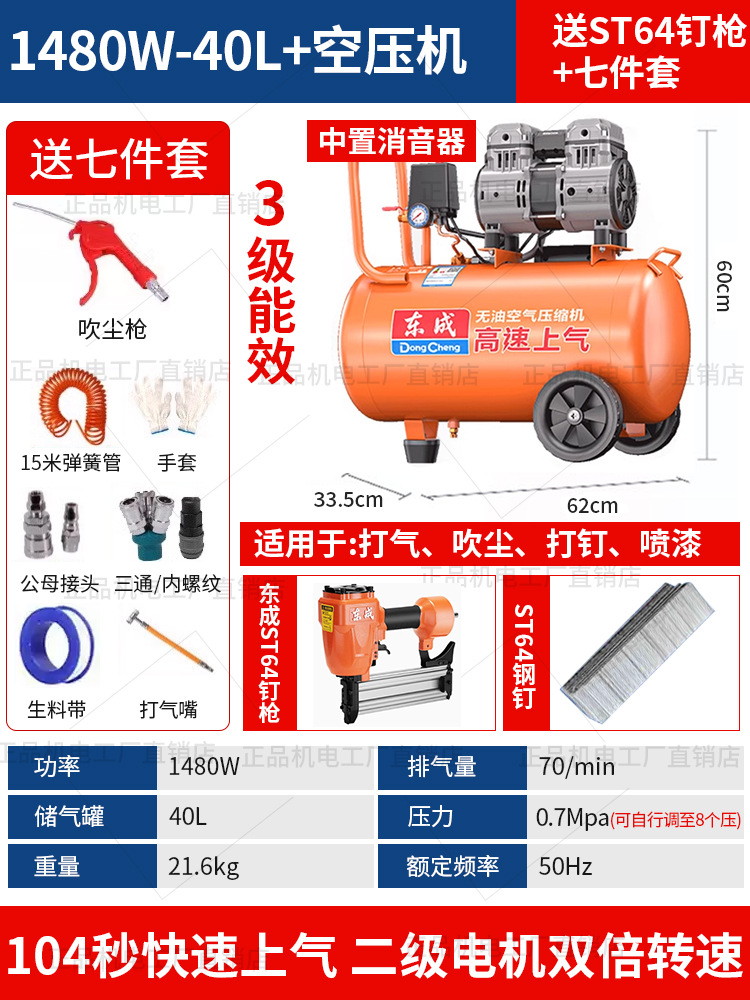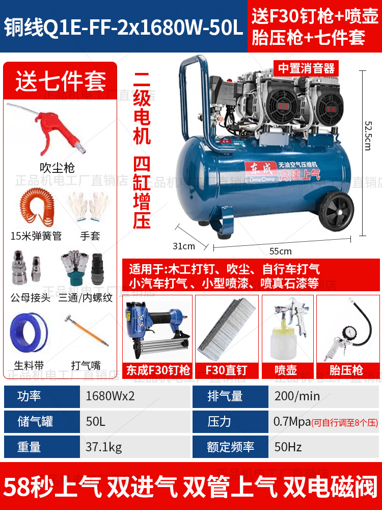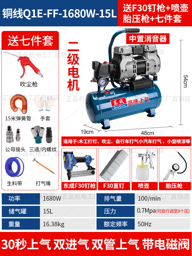 • 동성 정품, 가품, 벌금 10, 30년 브랜드 평판 - 55리터 [1480WX2-65초 공기 공급] 이중 공기 흡입구 + F30 스트레이트 네일건 + 7종 세트