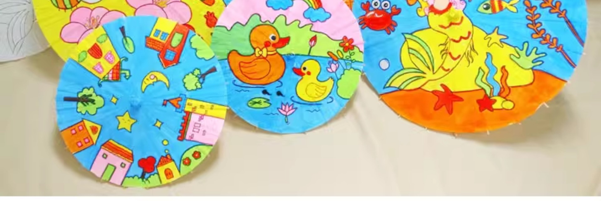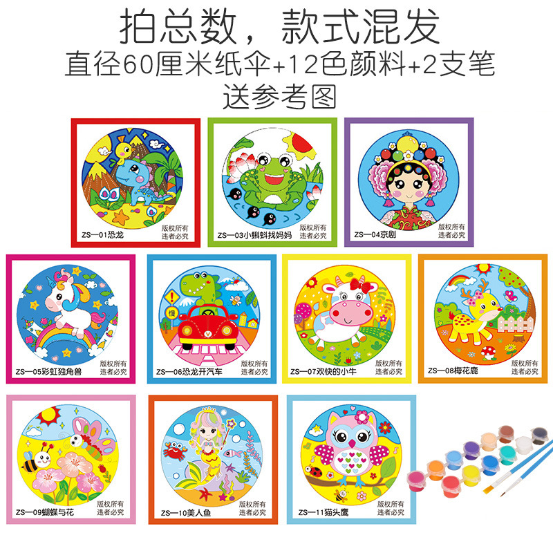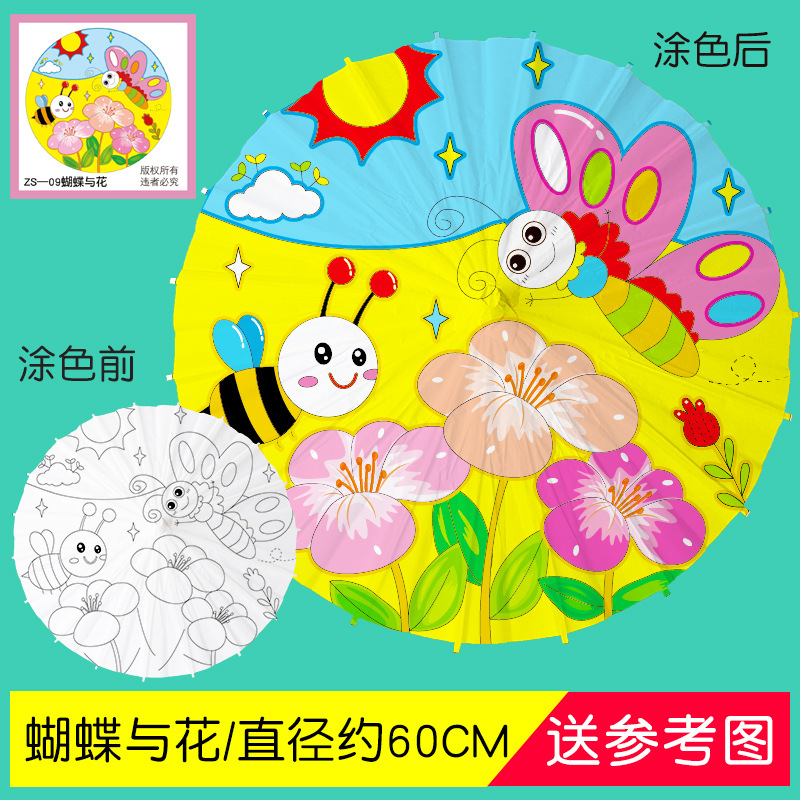 빈 어린이 오일 종이 우산 diy 손으로 그린 우산 재료 손으로 그린 낙서 색칠 소품 유치원 작은 우산스토어 가기