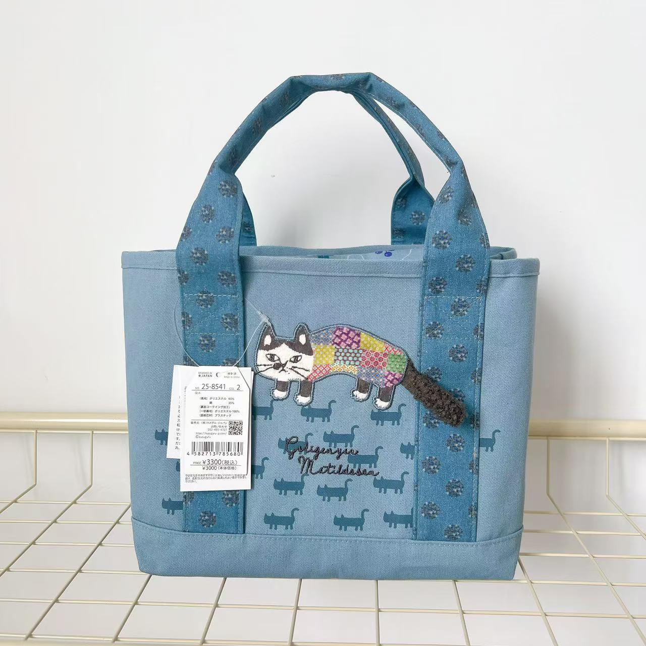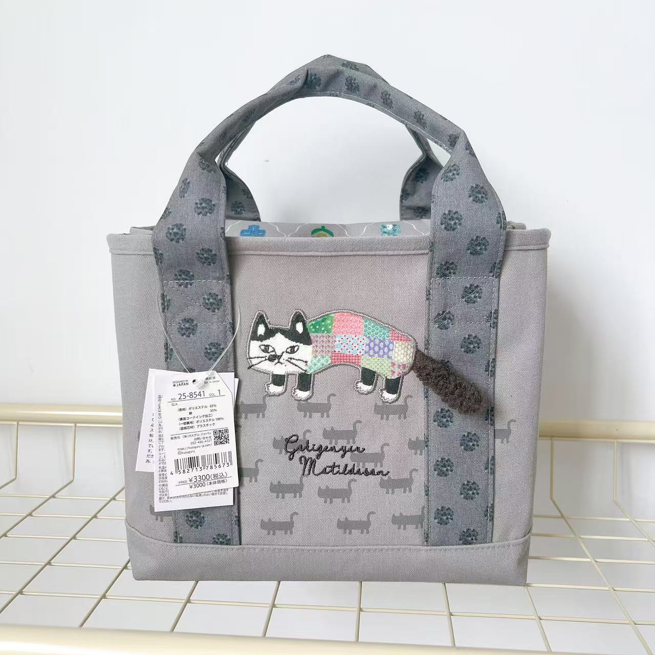일본 쿠스구루 정품 자수 고양이 핸드백 토트백 핸드백 수납칸 가방 캔버스 핸드백 401스토어 가기