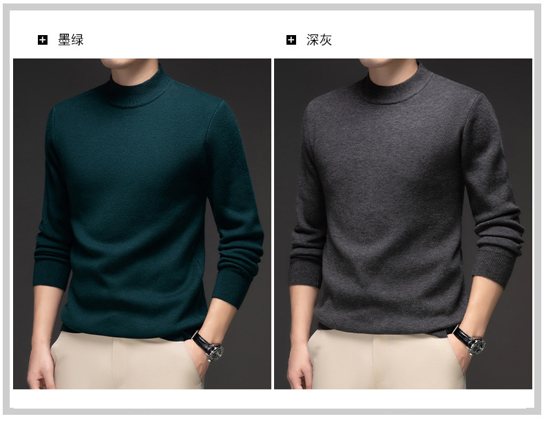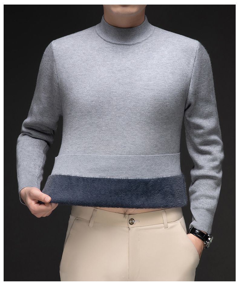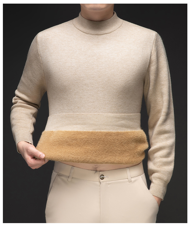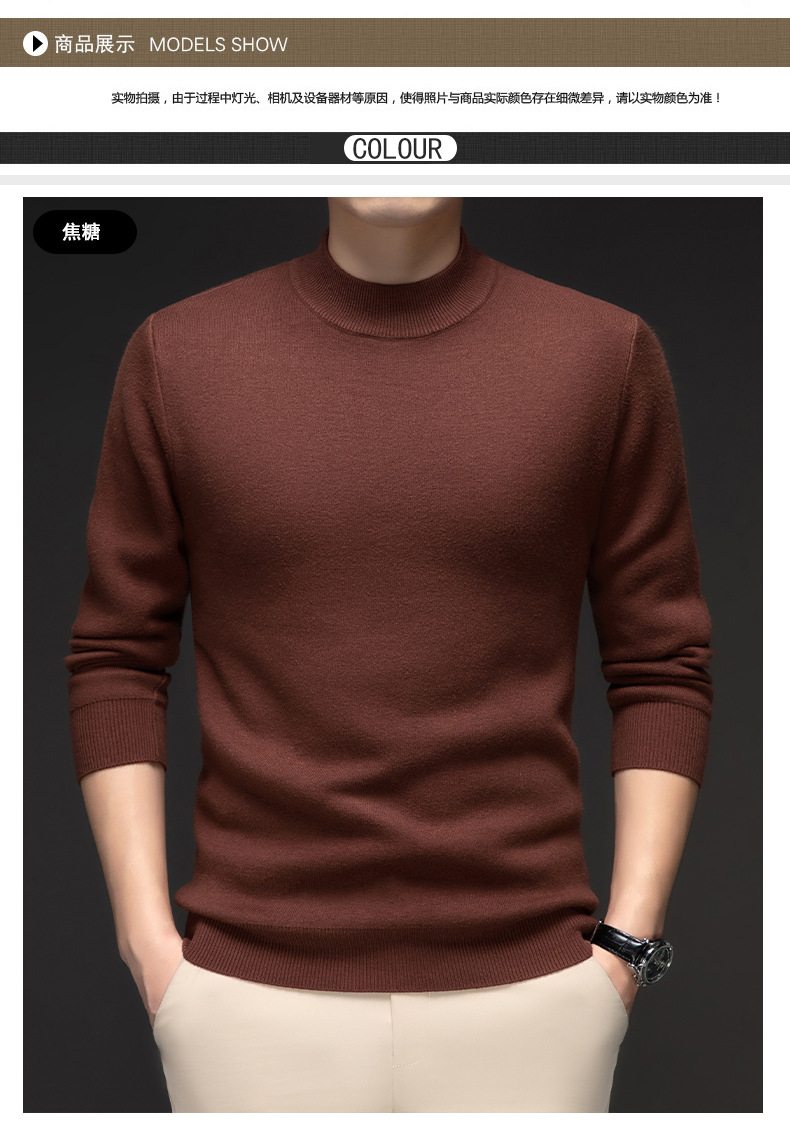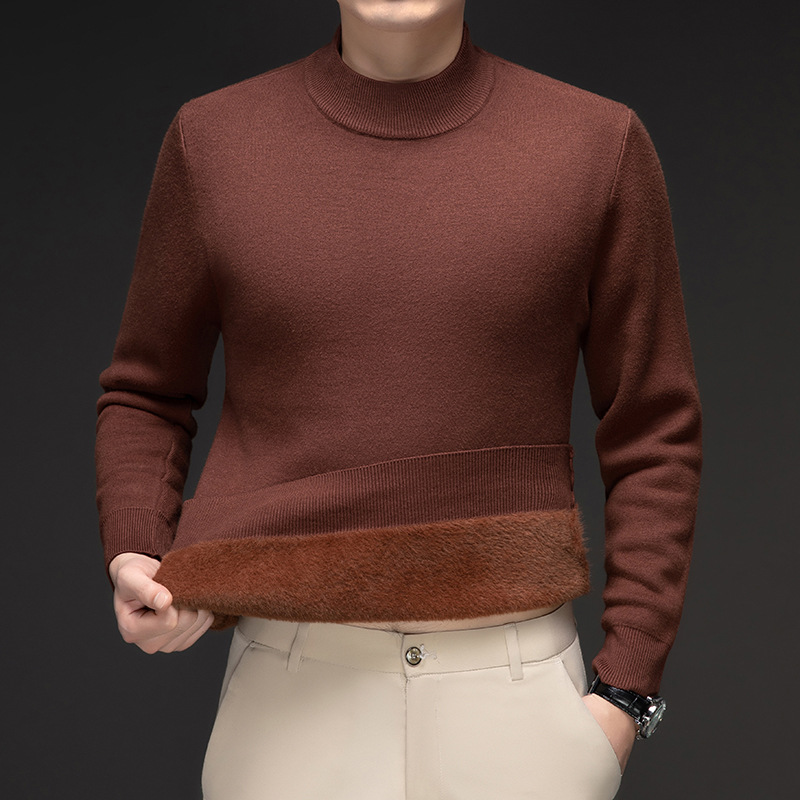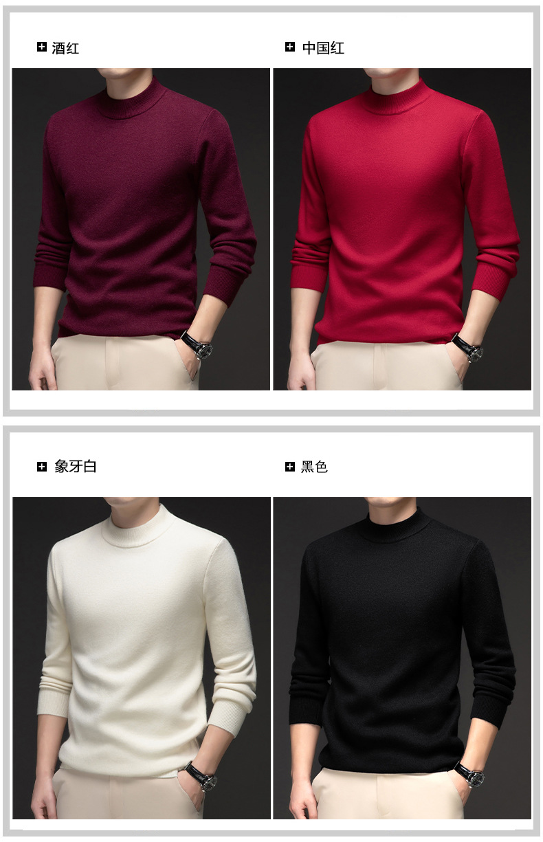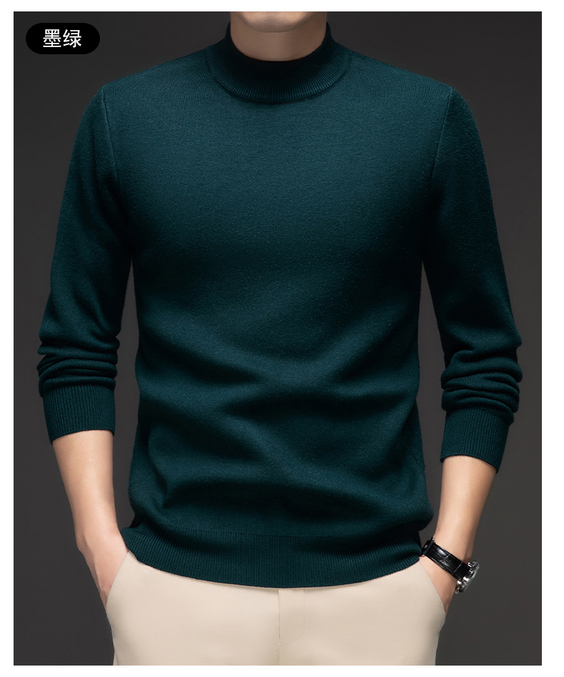 2025 가을, 겨울 남성 플러시 스웨터 두꺼운 청소년 하프 터틀넥 솔리드 컬러 바닥 셔츠 남성 의류 dropshipping