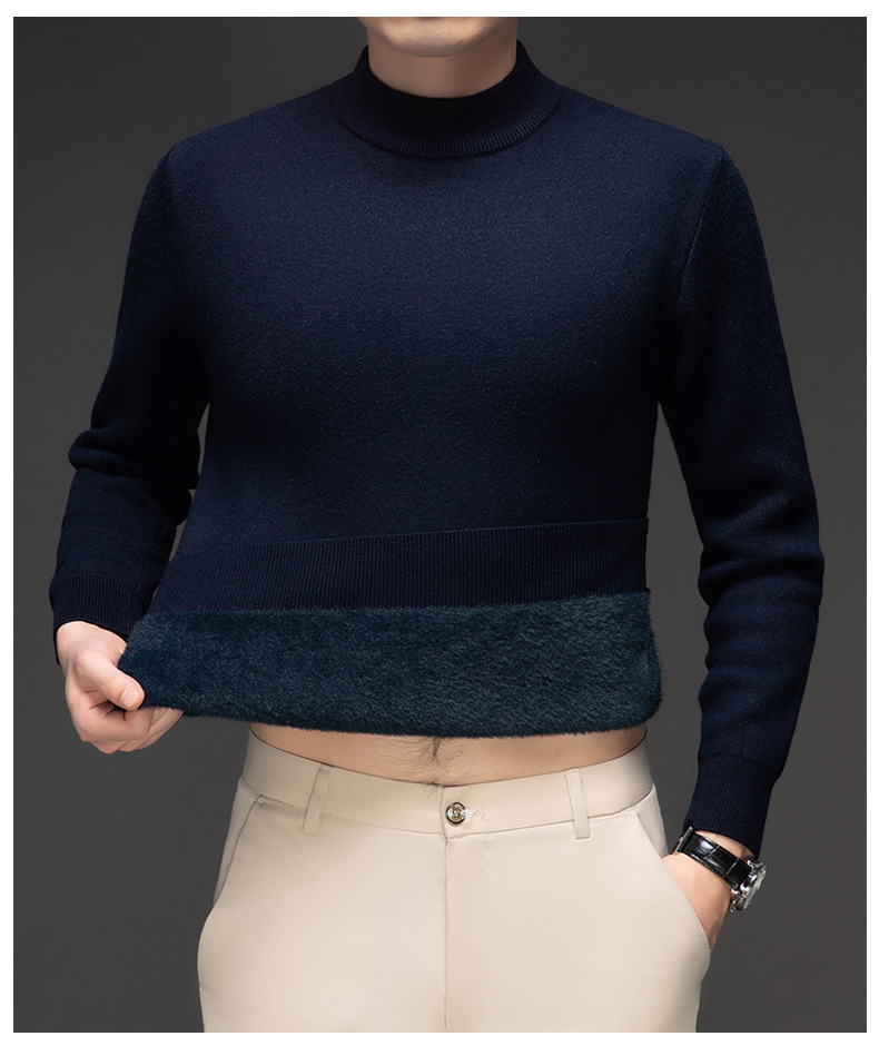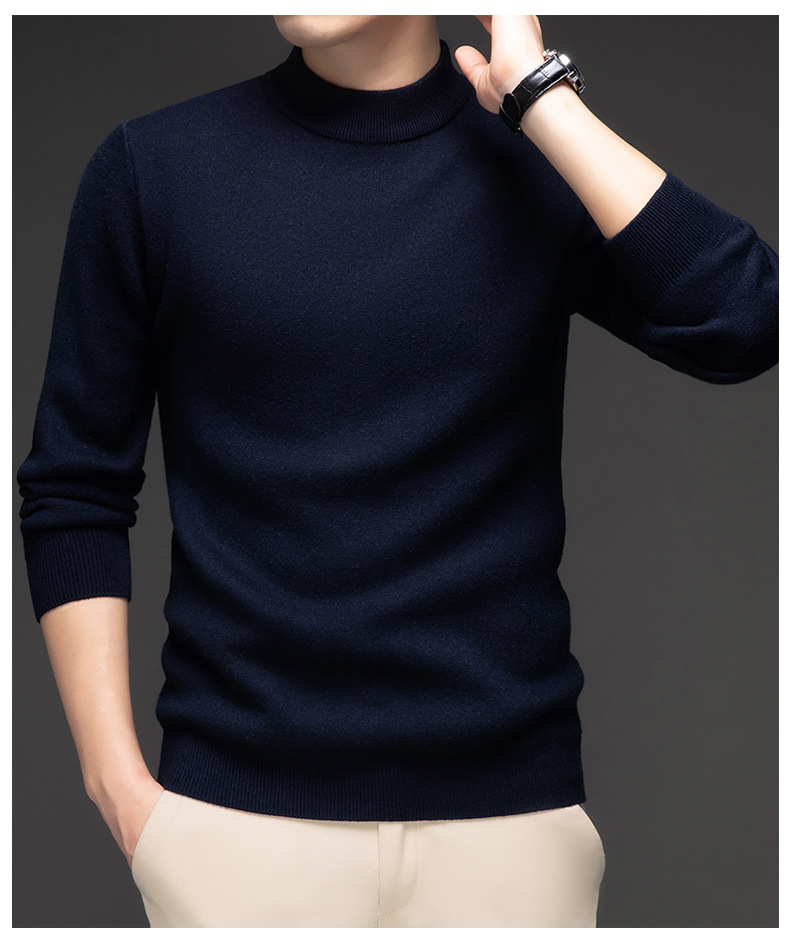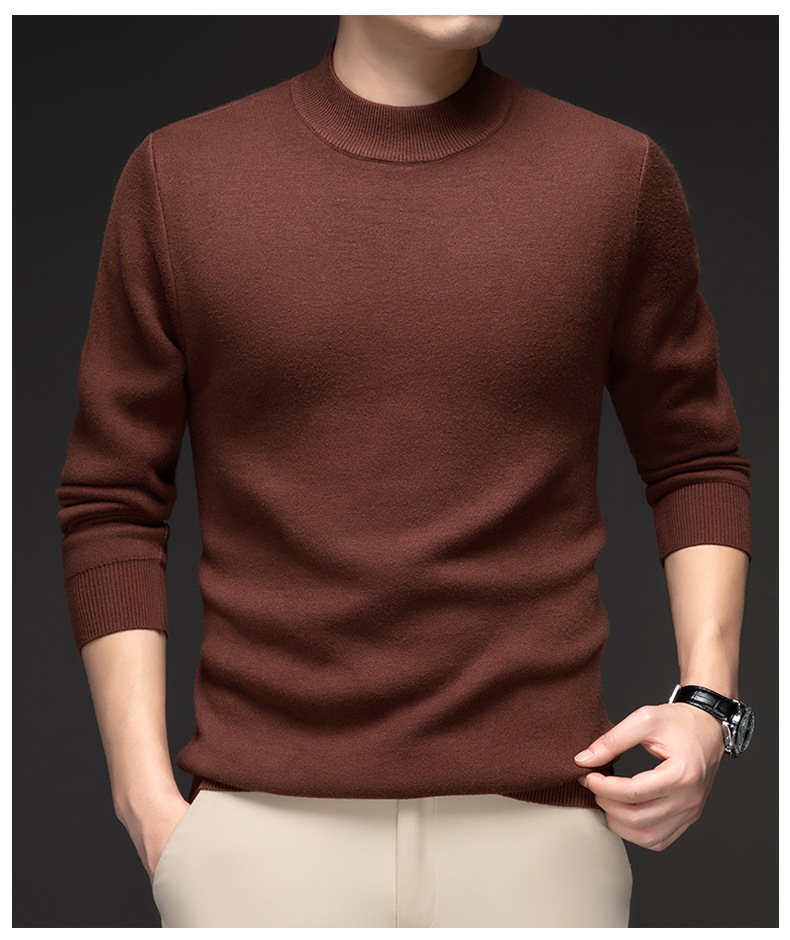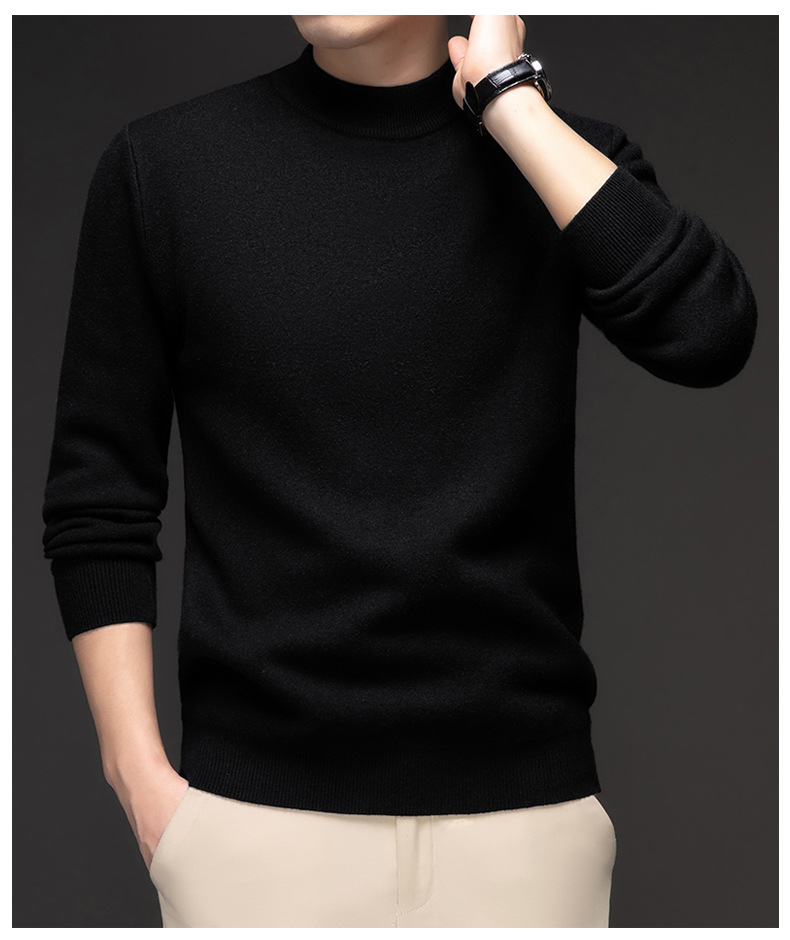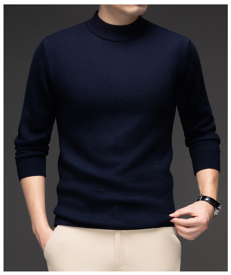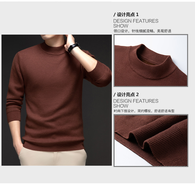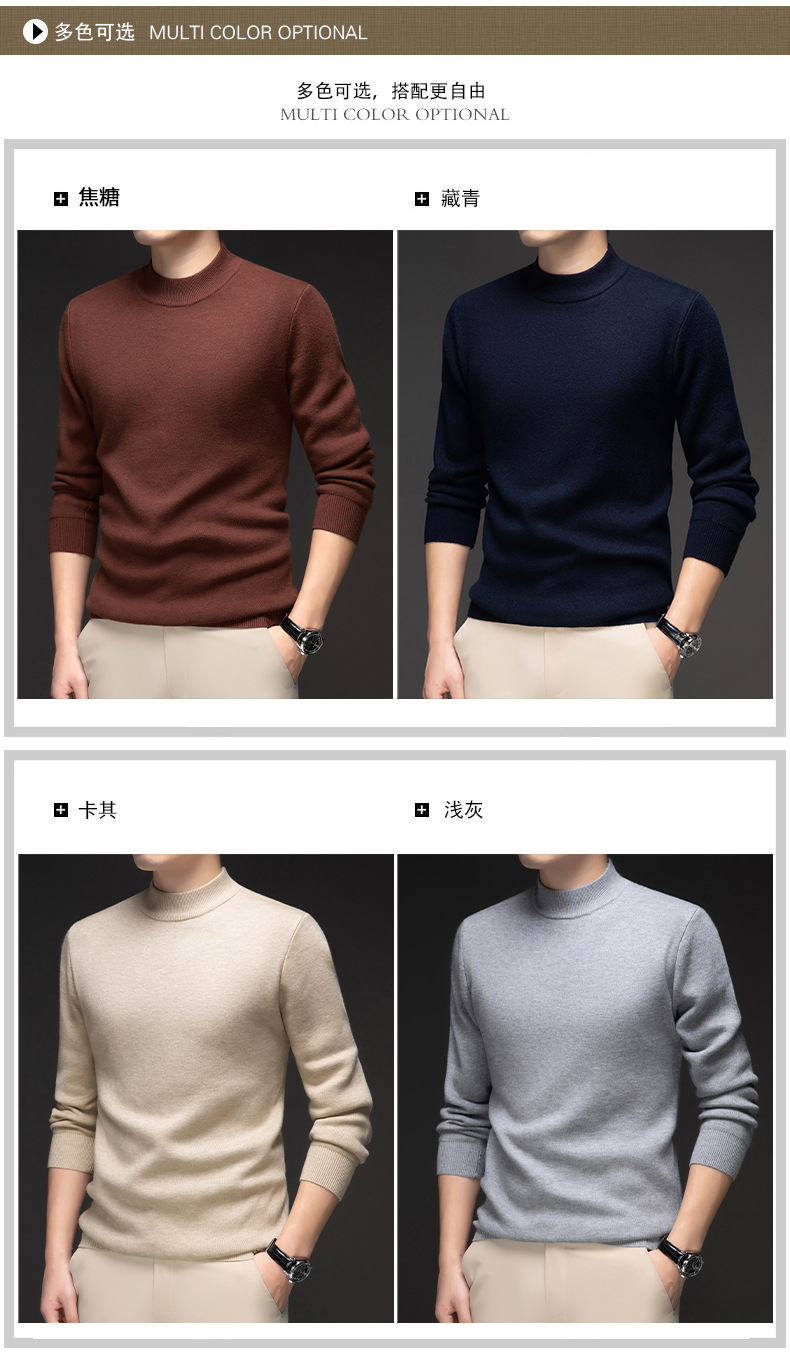2025 가을, 겨울 남성 플러시 스웨터 두꺼운 청소년 하프 터틀넥 솔리드 컬러 바닥 셔츠 남성 의류 dropshipping
