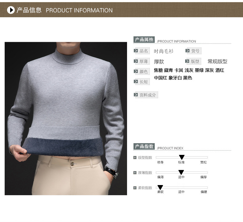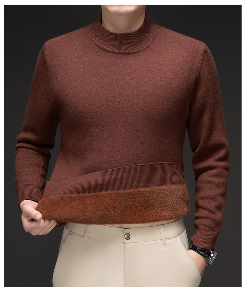 2025 가을, 겨울 남성 플러시 스웨터 두꺼운 청소년 하프 터틀넥 솔리드 컬러 바닥 셔츠 남성 의류 dropshipping스토어 가기