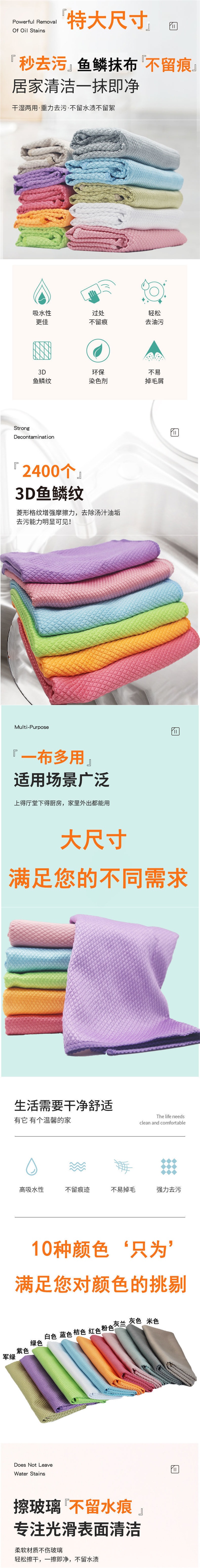 60*80 두꺼운 물고기 비늘 걸레, 흔적 없음 50×60×40 유리 천, 보풀 없음, 물 흡수성 도매