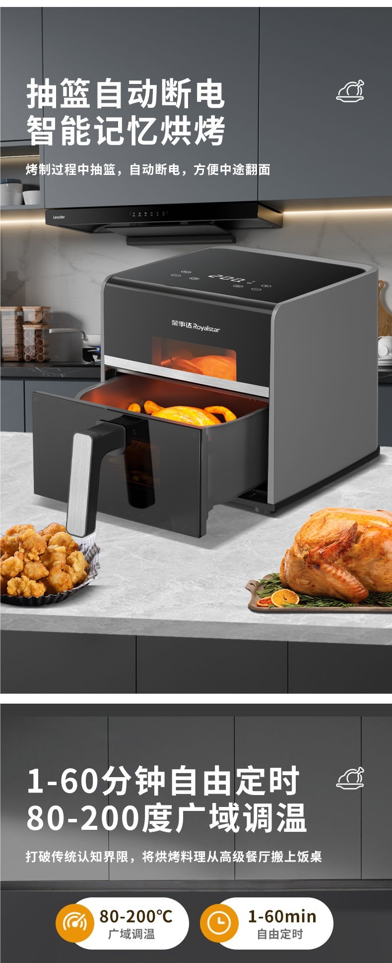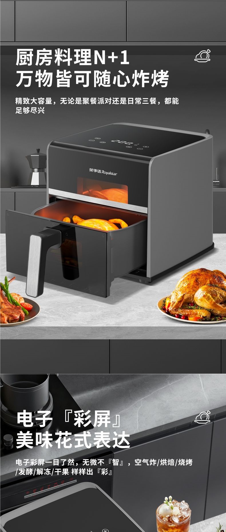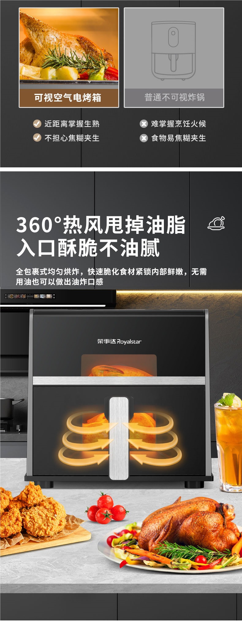 Royalstar 홈 새로운 에어 프라이어 시각적 대용량 스마트 터치 스크린 다기능 예약 완전 자동 오븐스토어 가기