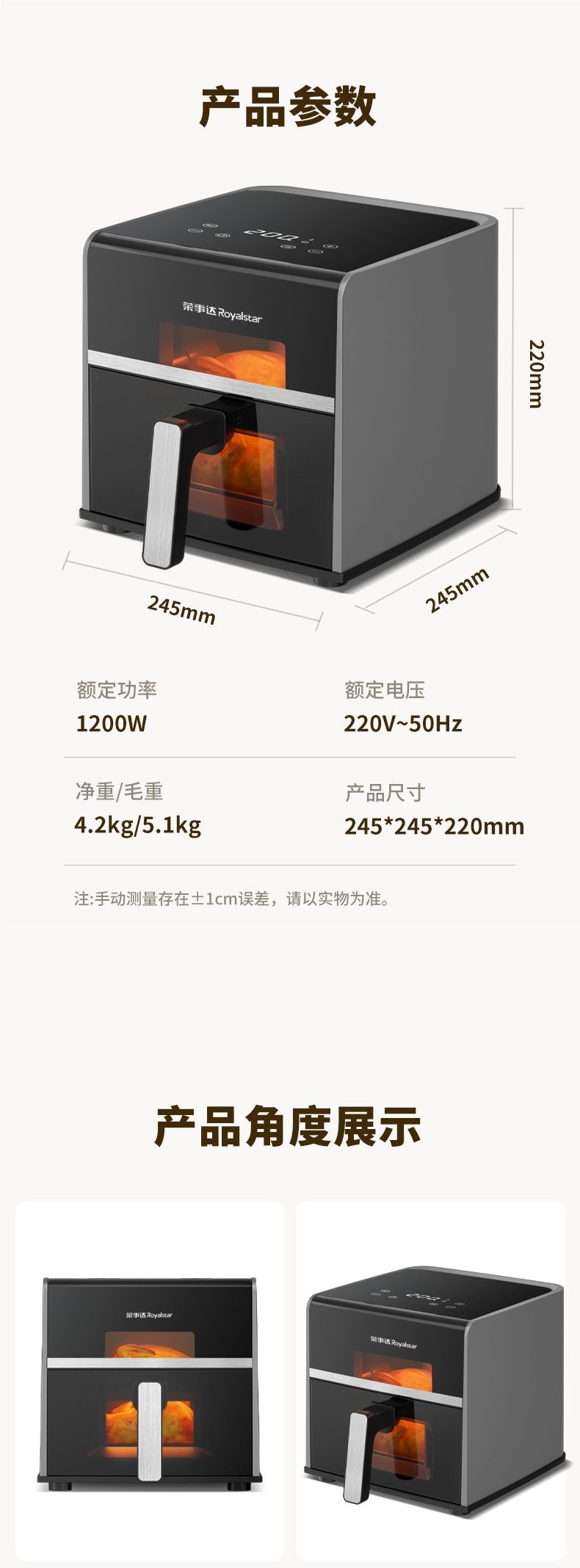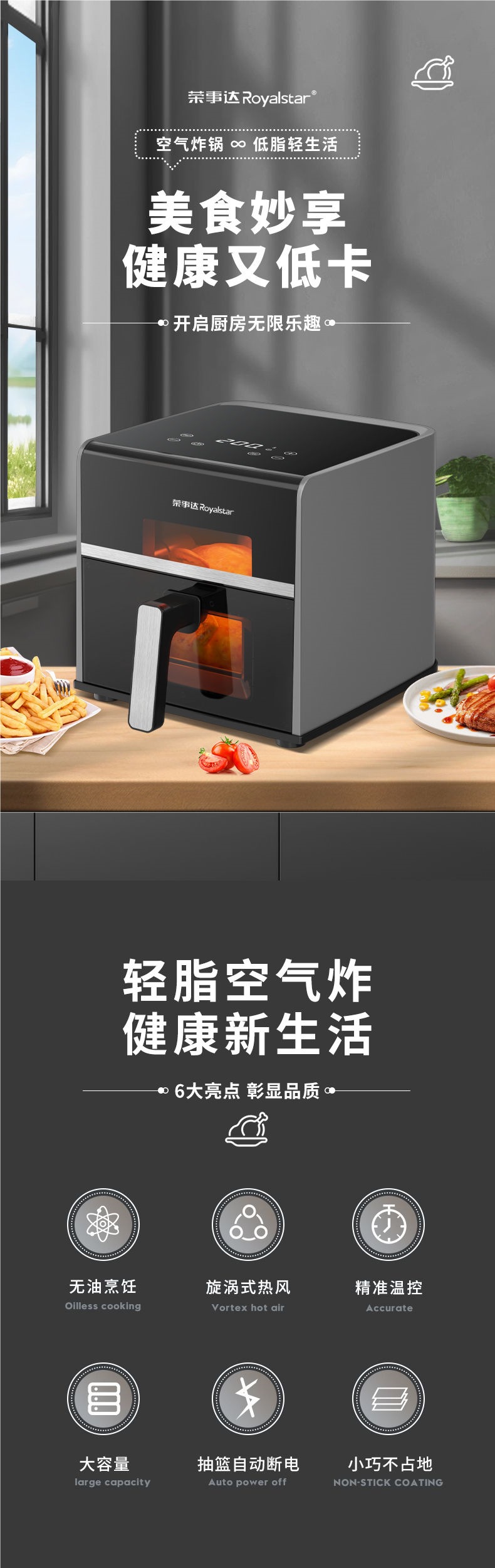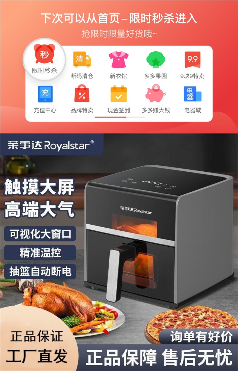 Royalstar 홈 새로운 에어 프라이어 시각적 대용량 스마트 터치 스크린 다기능 예약 완전 자동 오븐스토어 가기