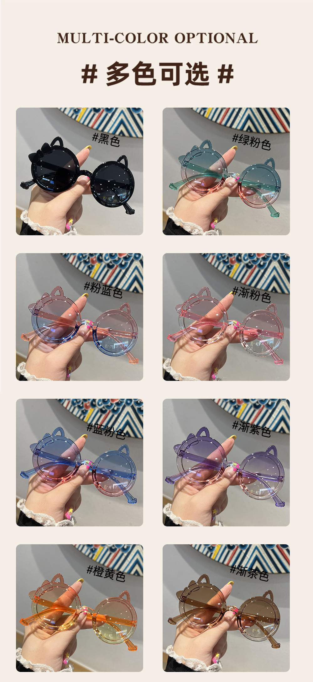 2025 새로운 올인원 어린이 선글라스 귀여운 새끼 고양이 안경 만화 캔디 컬러 아기 선글라스