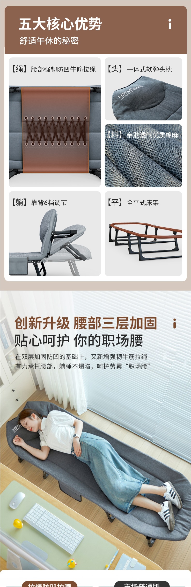 접이식 침대 사무실 점심 시간 싱글 라운지 의자 간단한 휴대용 병원 동반자 행진 낮잠 침대