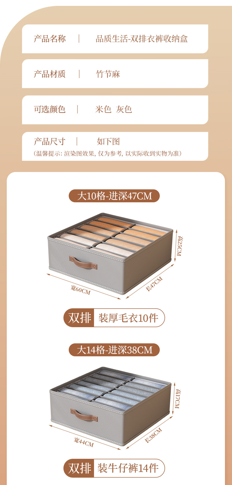 • 베이지 [업그레이드된 복열-10그리드] 대나무천/2배용량 [스웨터 두꺼운옷/바지]
