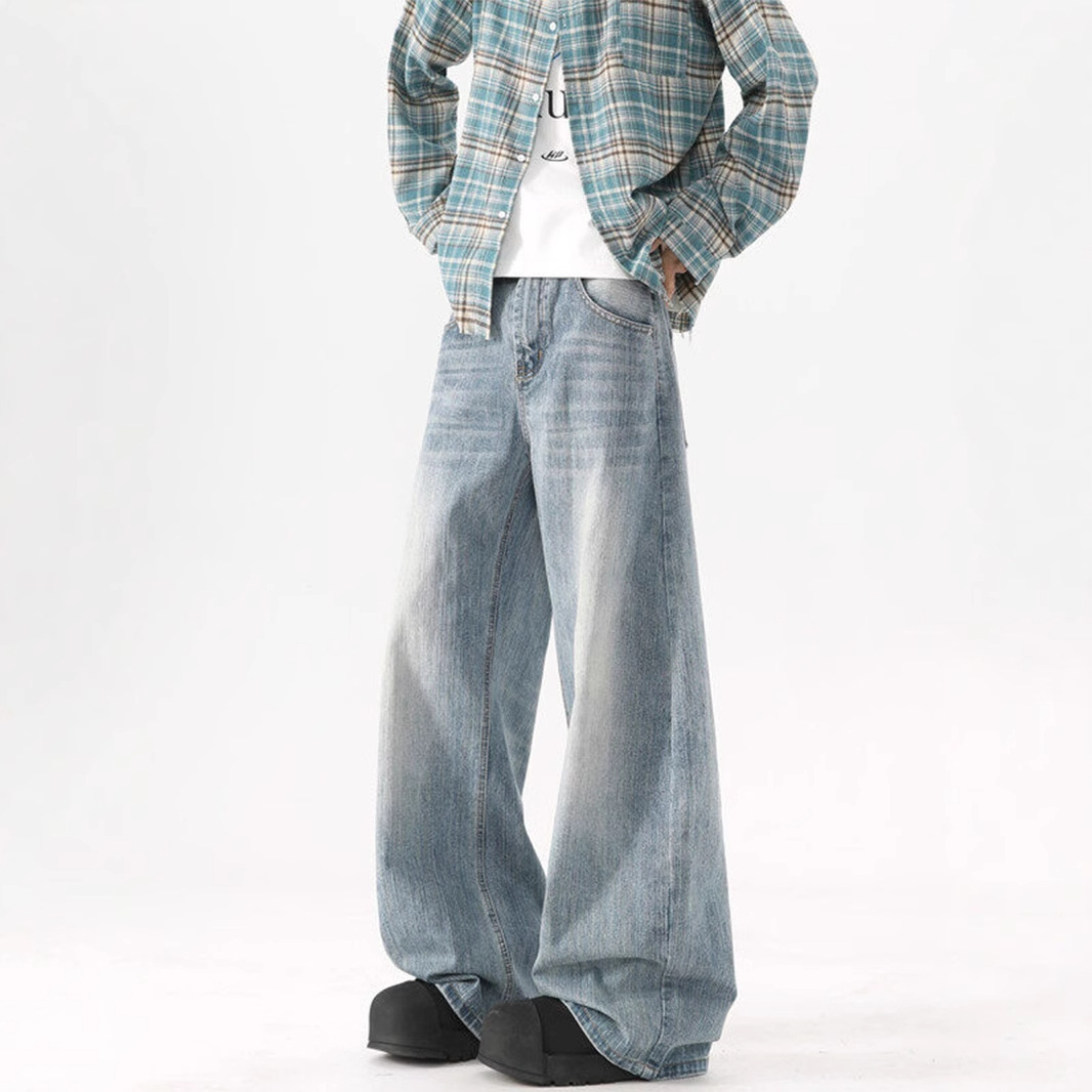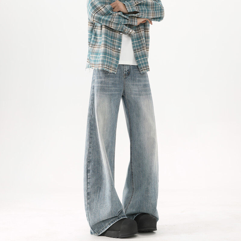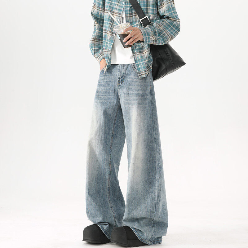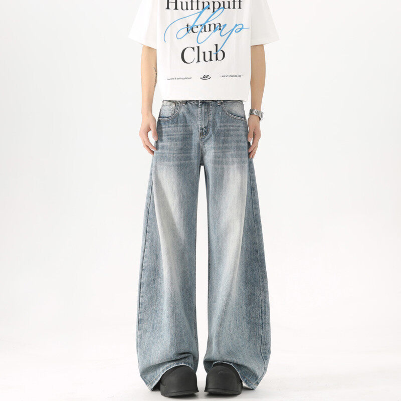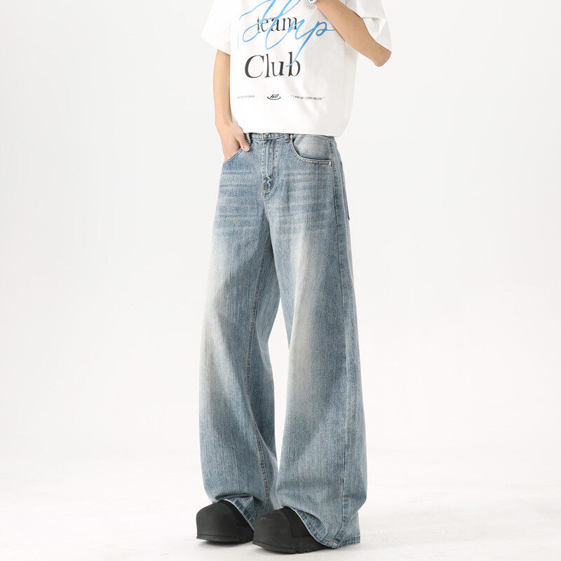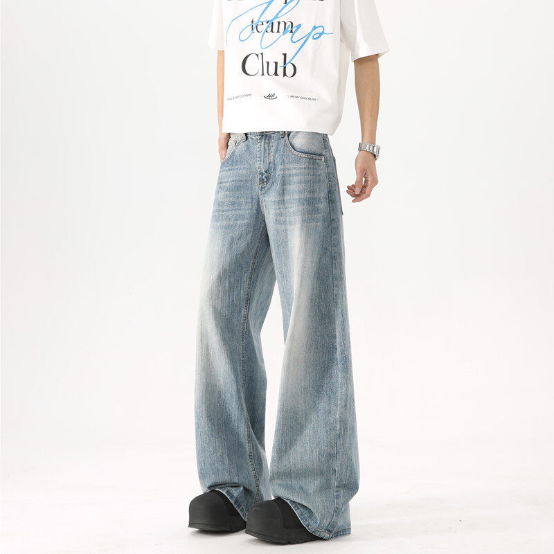 트렌디 브랜드 워싱 블루 청바지 남성 여름 바이브 하이 스트리트 다용도 캐주얼 와이드 팬츠 아메리칸 루즈 와이드 팬츠스토어 가기