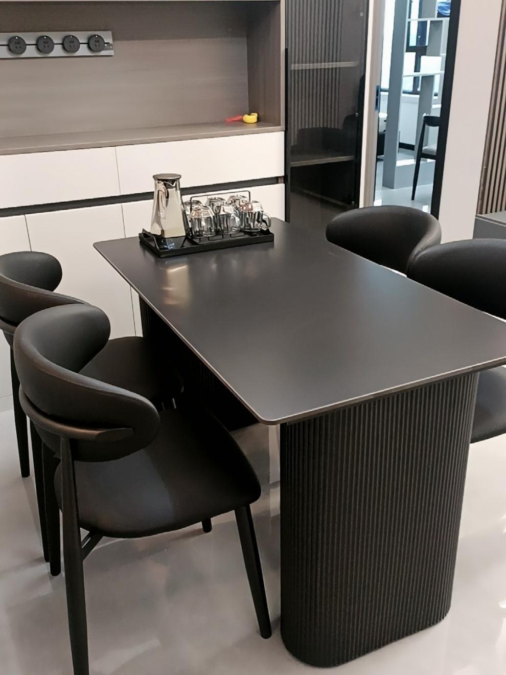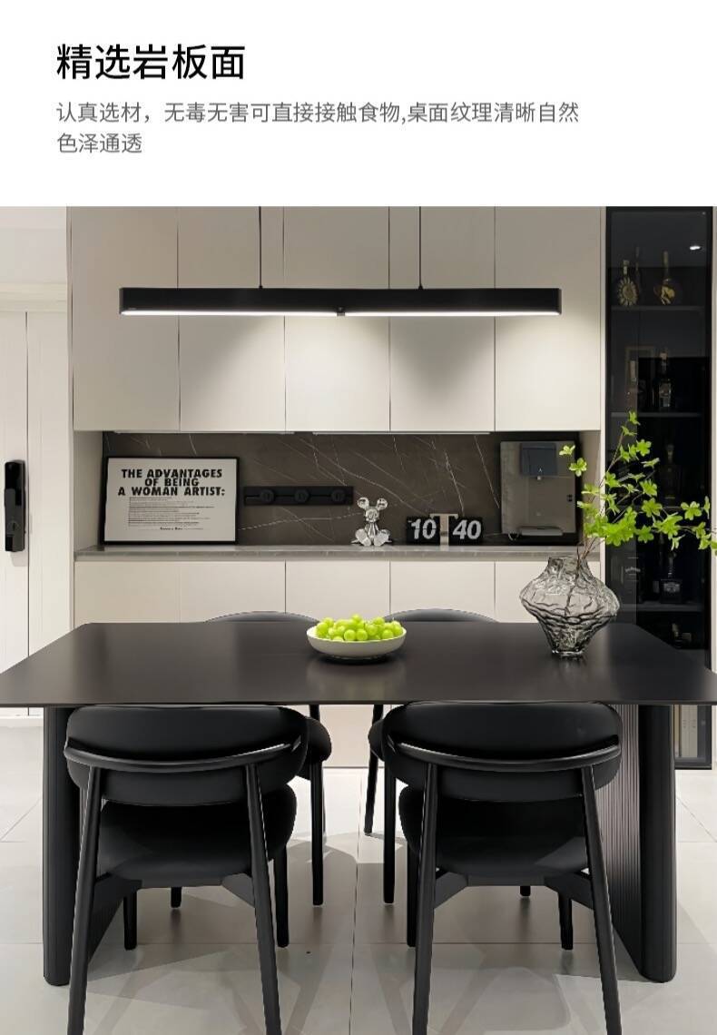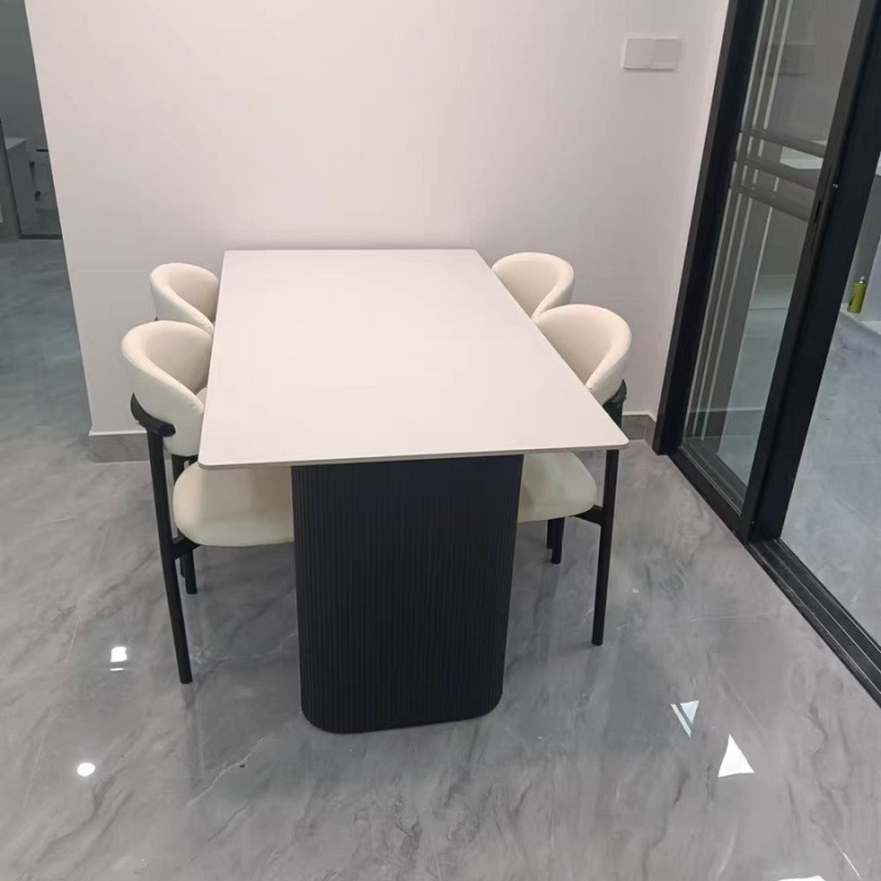 현대적인 미니멀리스트 슬레이트 식탁, 검은색 홈 다이닝 의자 조합, 고급 소형 이탈리아 직사각형 식탁, B&B