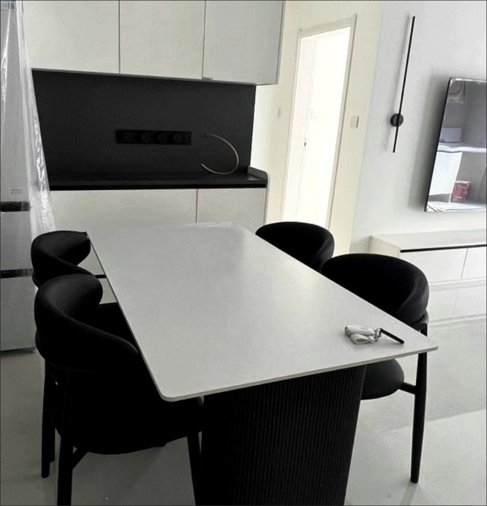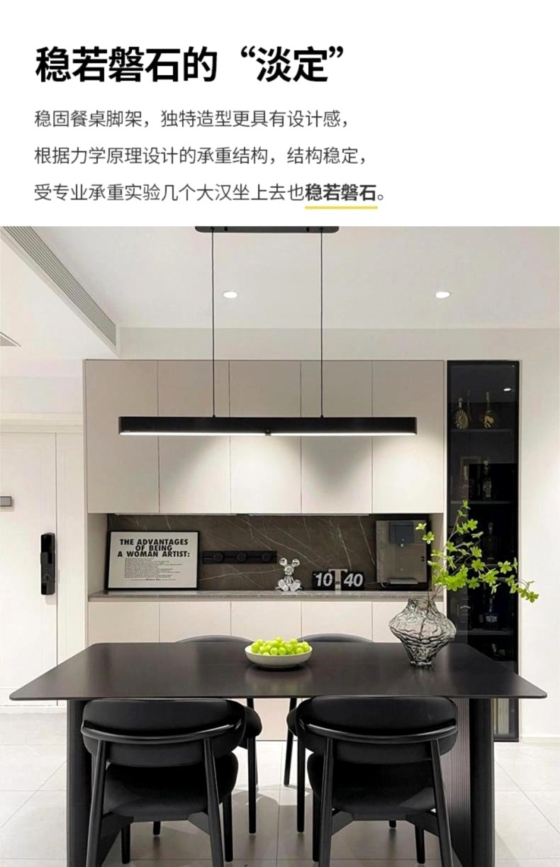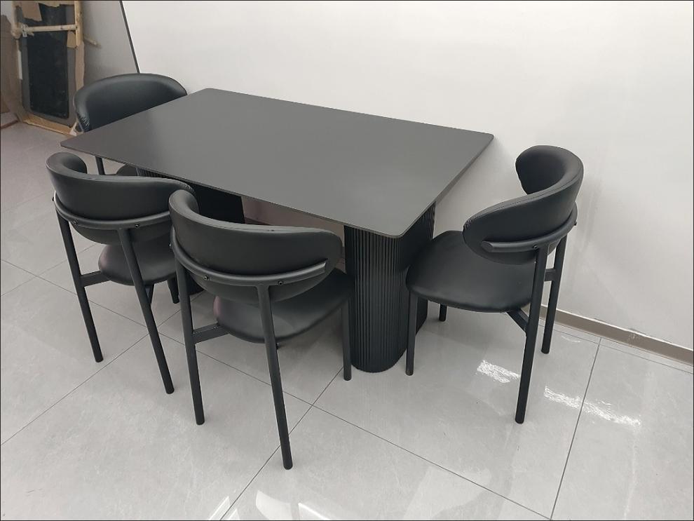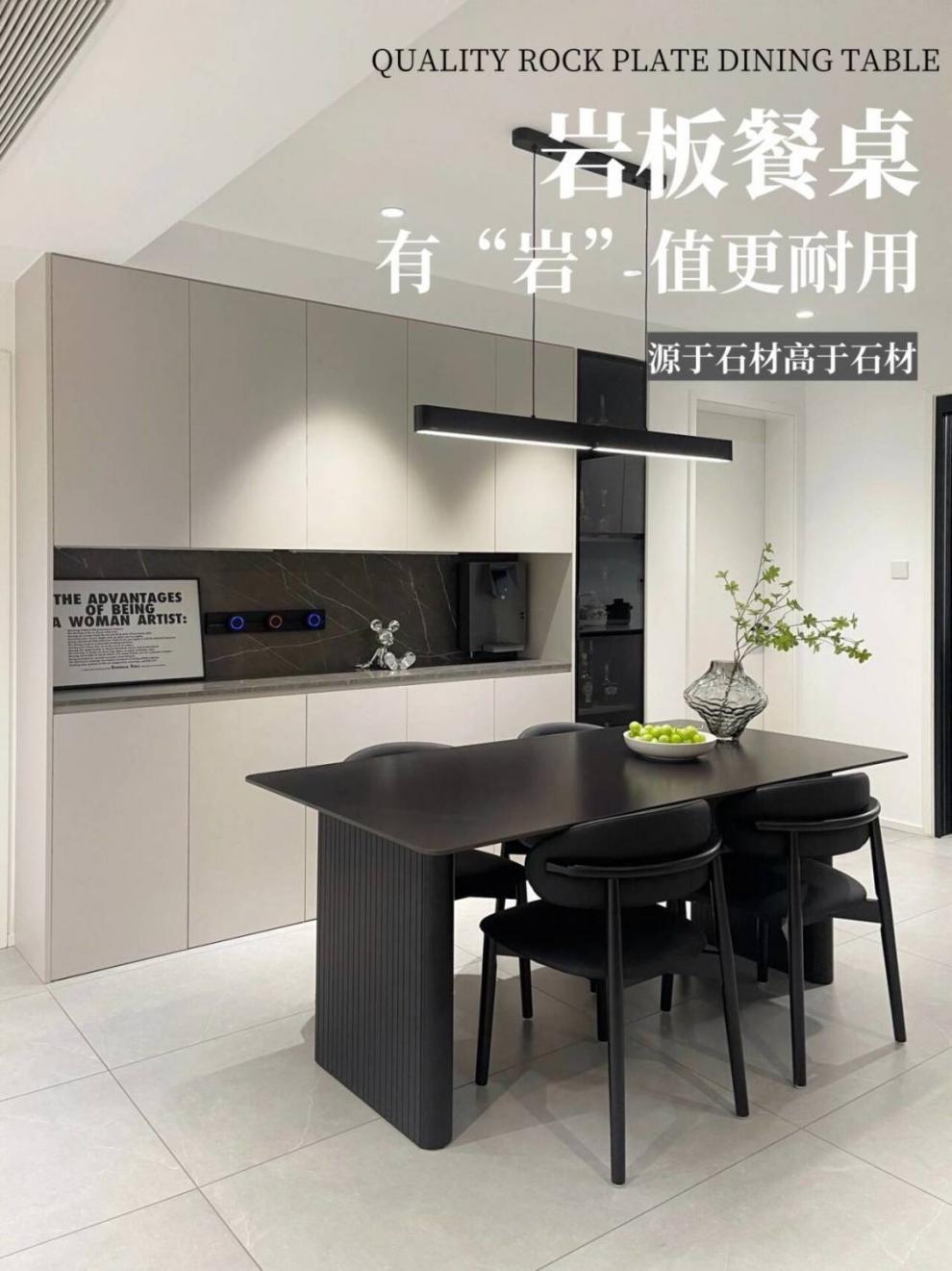 현대적인 미니멀리스트 슬레이트 식탁, 검은색 홈 다이닝 의자 조합, 고급 소형 이탈리아 직사각형 식탁, B&B