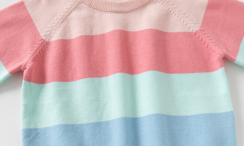 가을 신작 아동복 소녀 컬러 스트라이프 니트 바닥 셔츠 인기 판매 중간 아동용 탑 베이비 싱글 레이어 코튼 스웨터