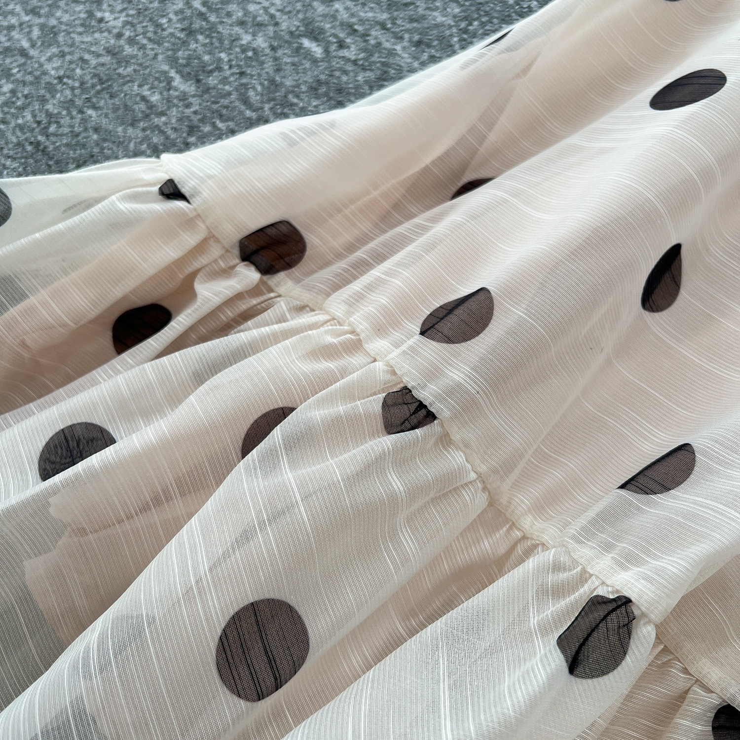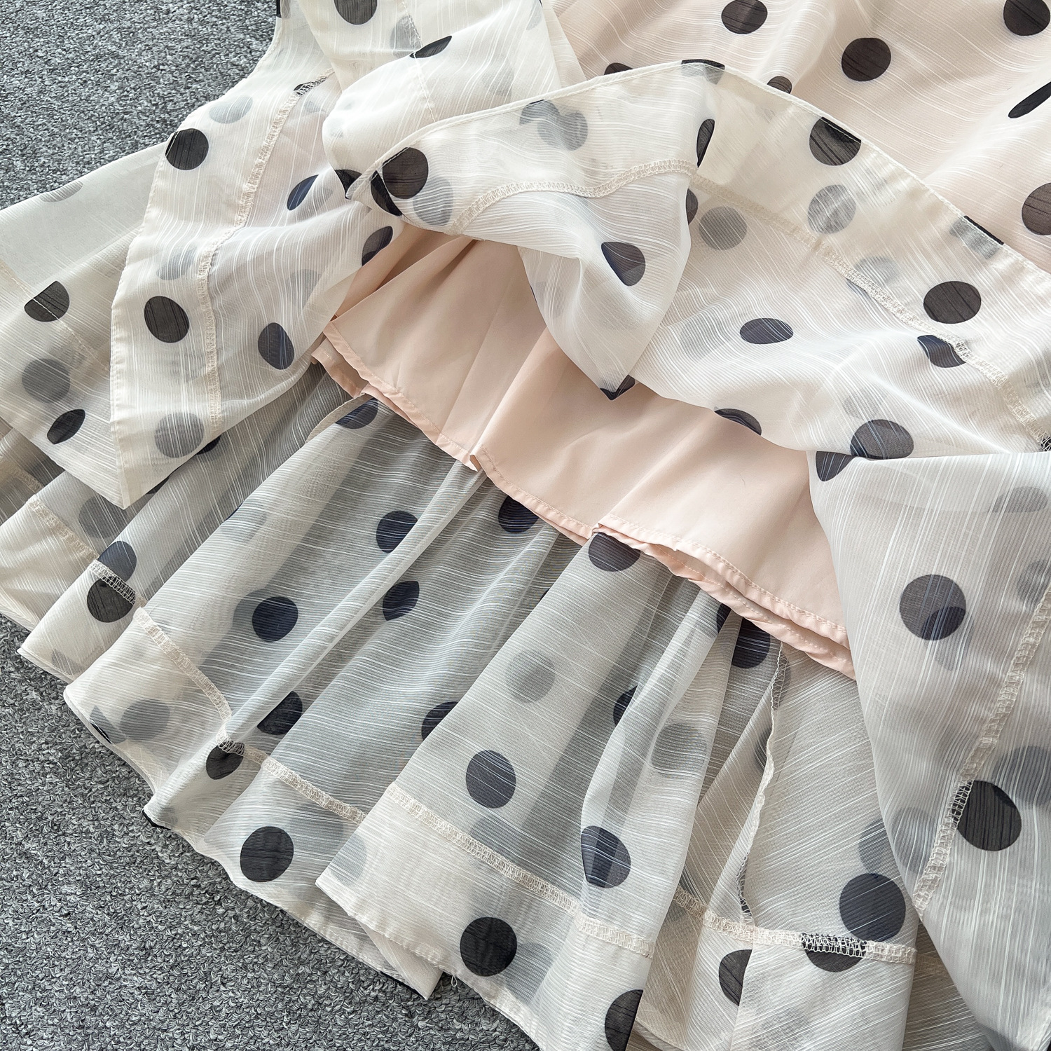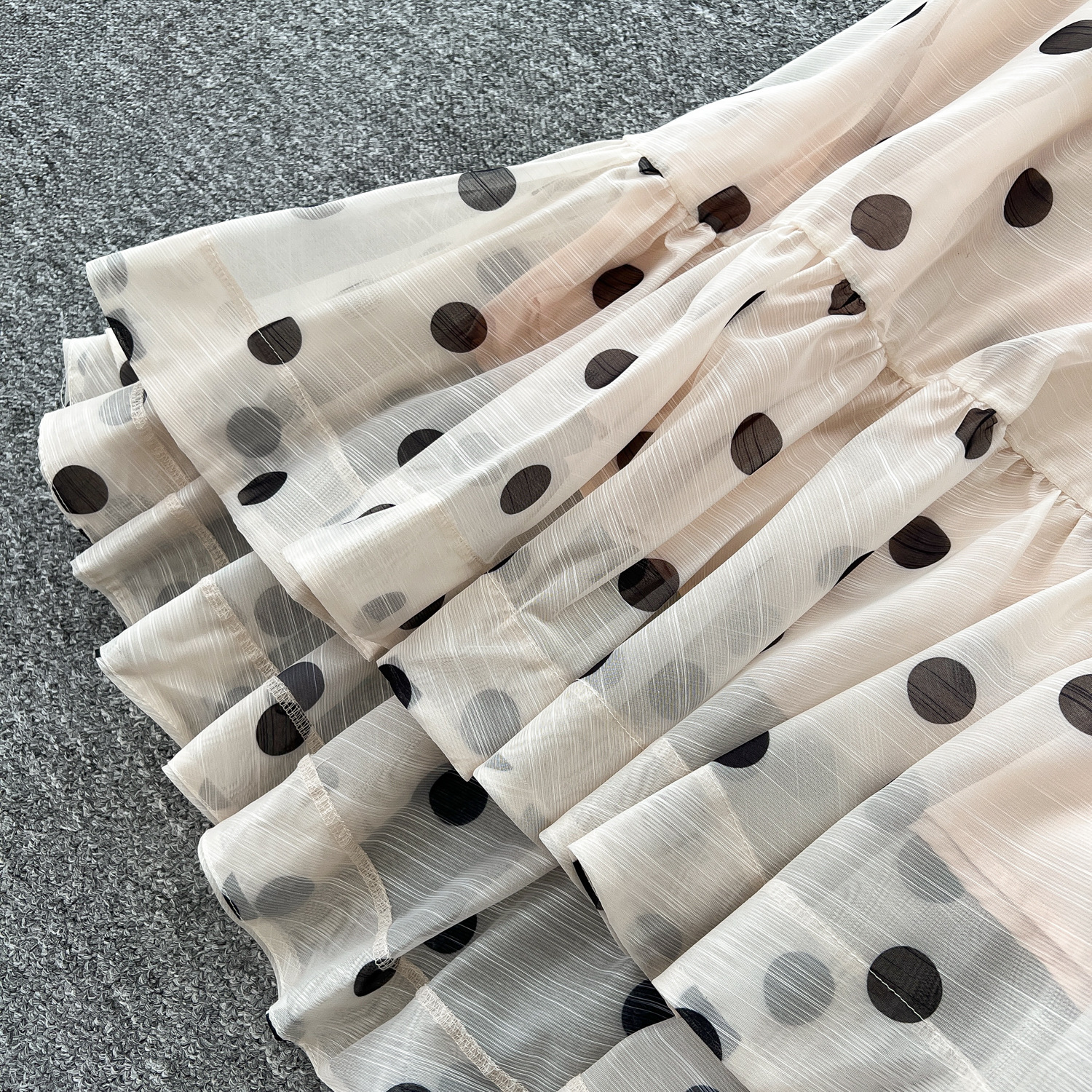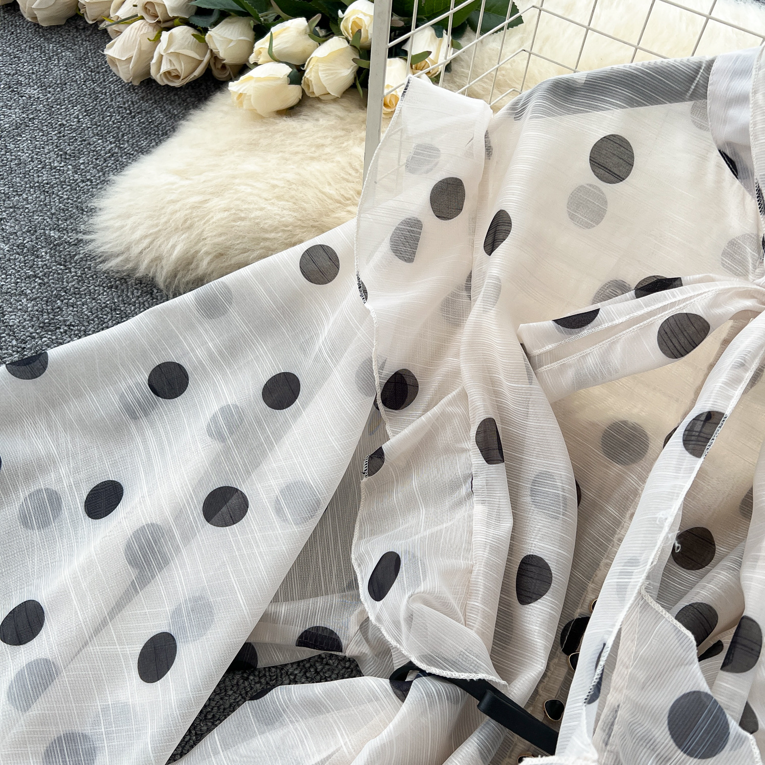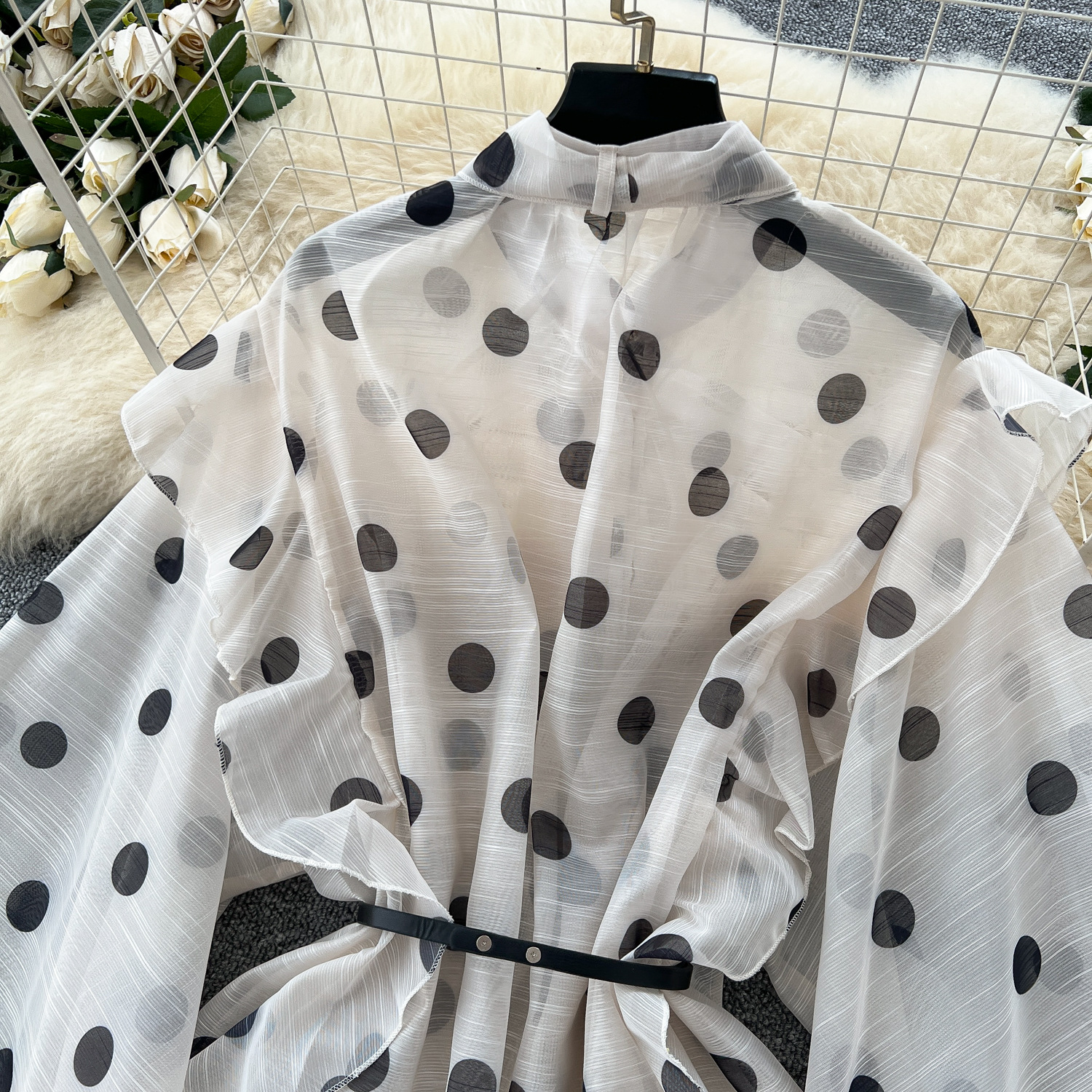 프렌치 스타일 여성 하이엔드 스트랩 웨이스트 랜턴 슬리브 폴카 도트 셔츠 여성 하이웨이스트 러플 피쉬테일 스커트