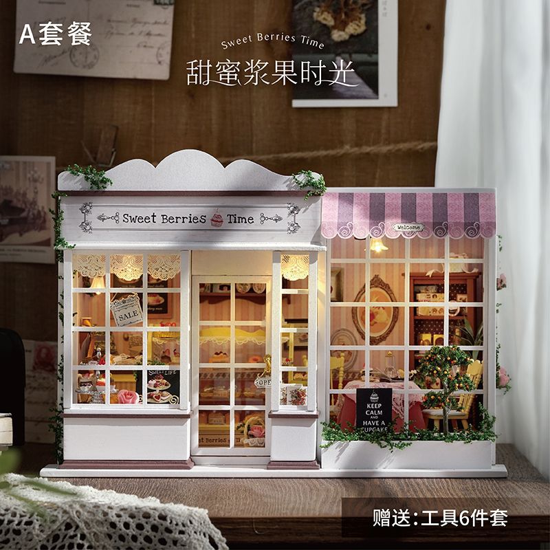 Diy 캐빈 수제 집 조립 입체 퍼즐 미니 모델 소녀 장난감 소녀 생일 선물스토어 가기