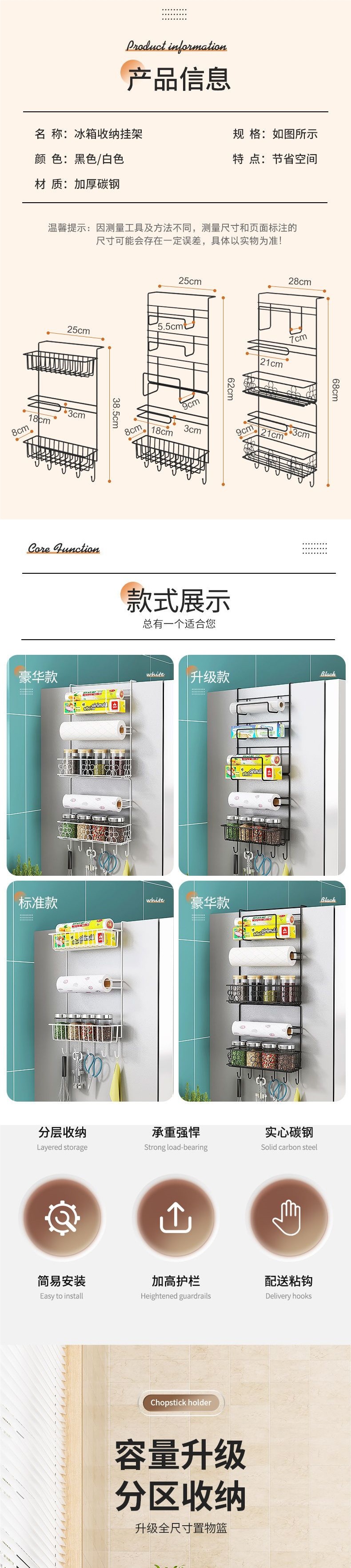 냉장고 보관함 다기능 측면 걸이 주방 종이 타월 플라스틱 랩 가방 조미료 보관함 가정용 용품스토어 가기