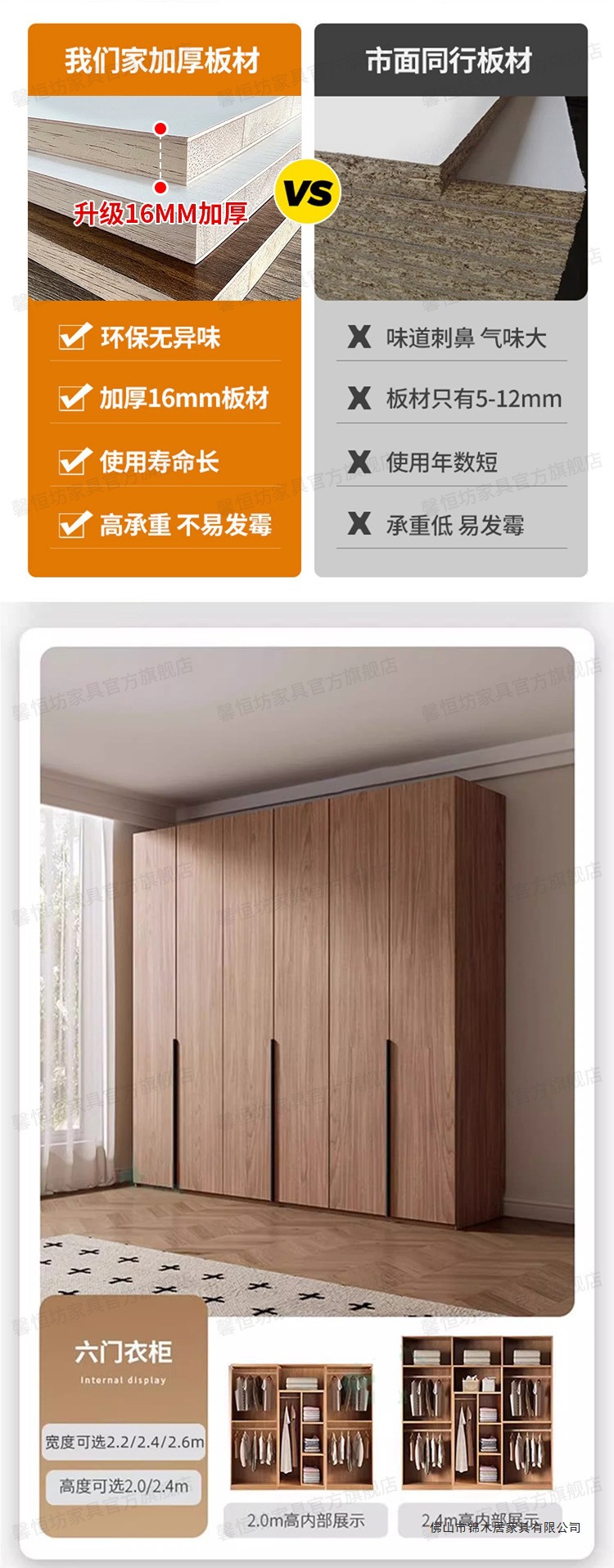단단한 나무 옷장 홈 침실 전체 통합 작은 아파트 양문형 캐비닛 임대실 수납 옷장 Amazon