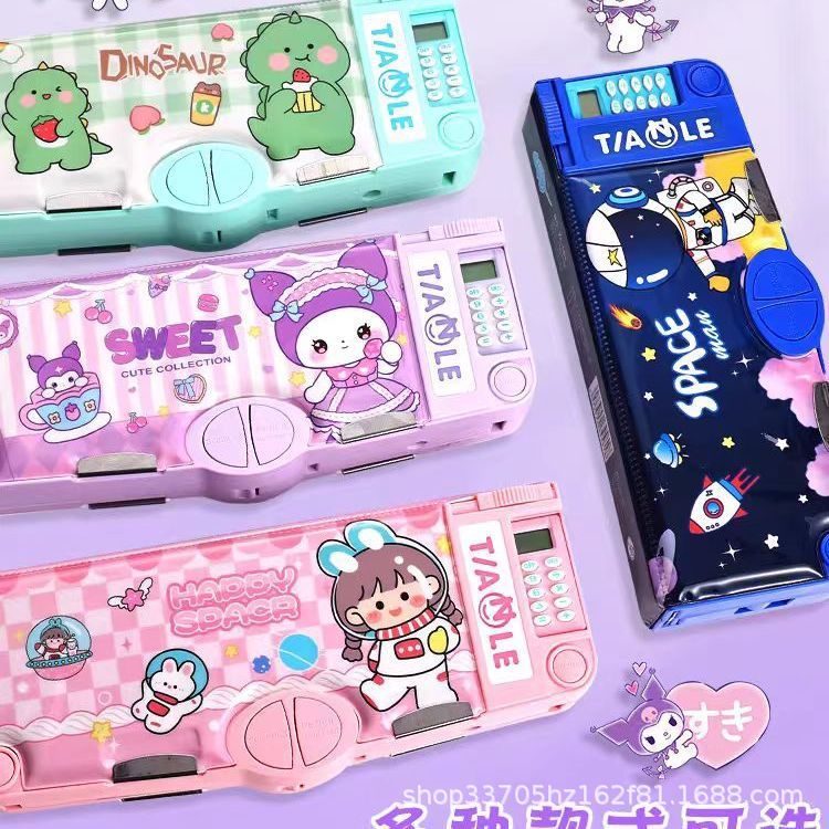 계산기 문구 상자 연필 상자 연필 가방 보관 상자 어린이 대용량 더블 레이어 인터넷 연예인 연필 상자 다기능 문구 상자스토어 가기