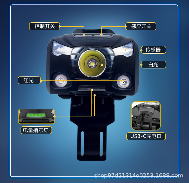 야간 작업 현장에서 조절 가능한 특수 야외 내장 작업등을 갖춘 LED 지능형 센서 헤드라이트 안전 헬멧