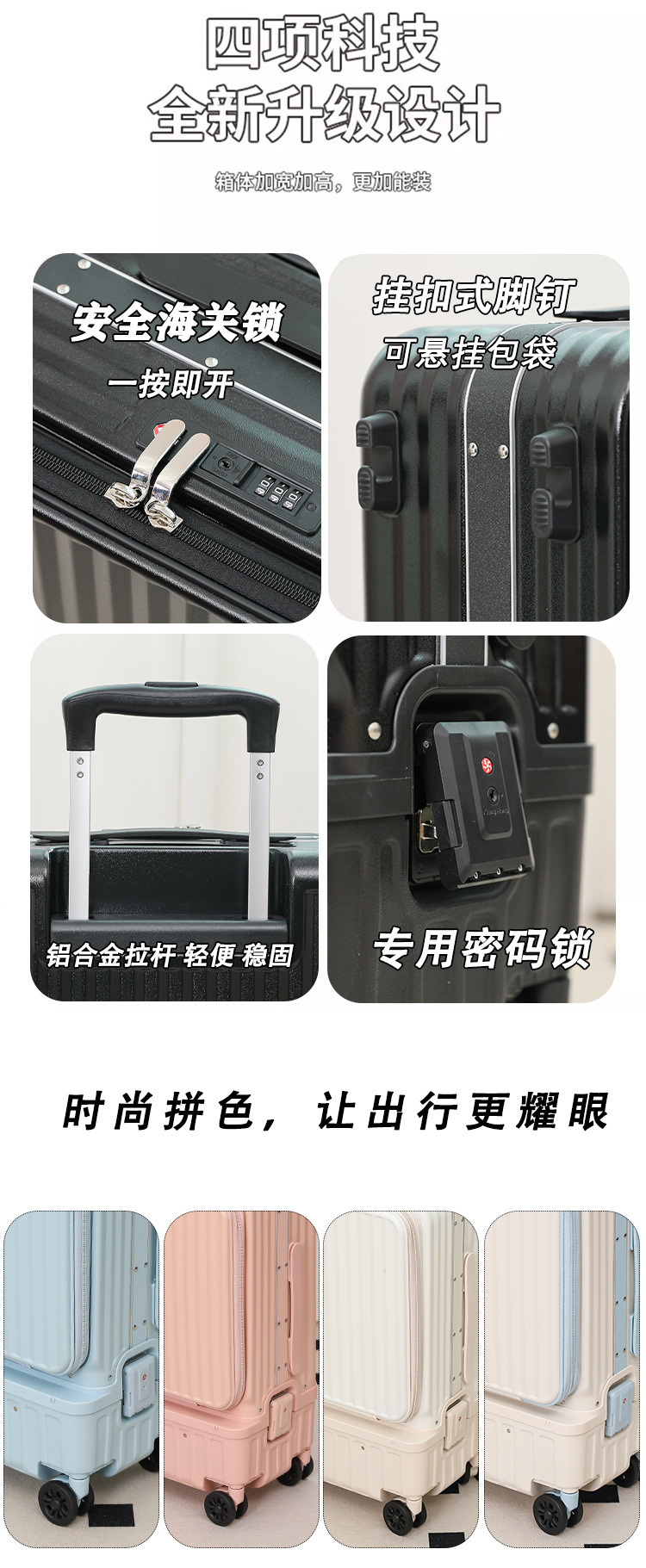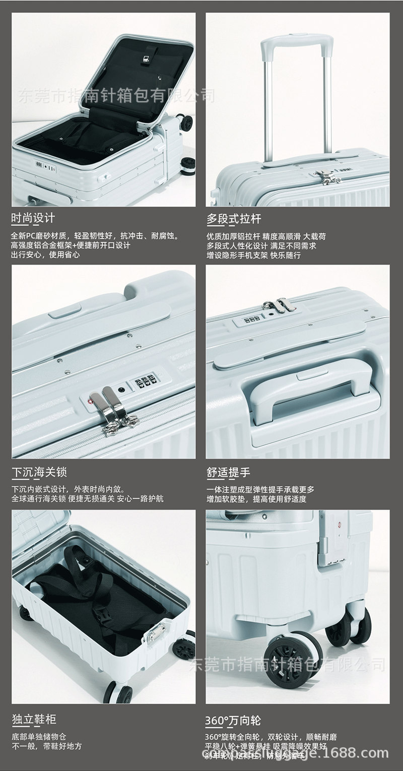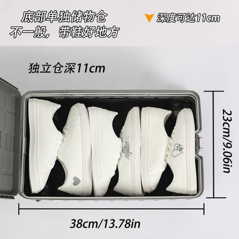 다기능 전면 개방형 독립 수납 트렁크, 건식 및 습식 분리 알루미늄 프레임 여행 가방, 남성용 및 여성용 비즈니스 비밀번호 트롤리 케이스스토어 가기