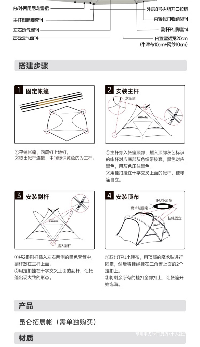 • [샌드 컬러] 메인텐트 로비 스노우 스커트는 Kunlun Pro 3.0에만 적합합니다.