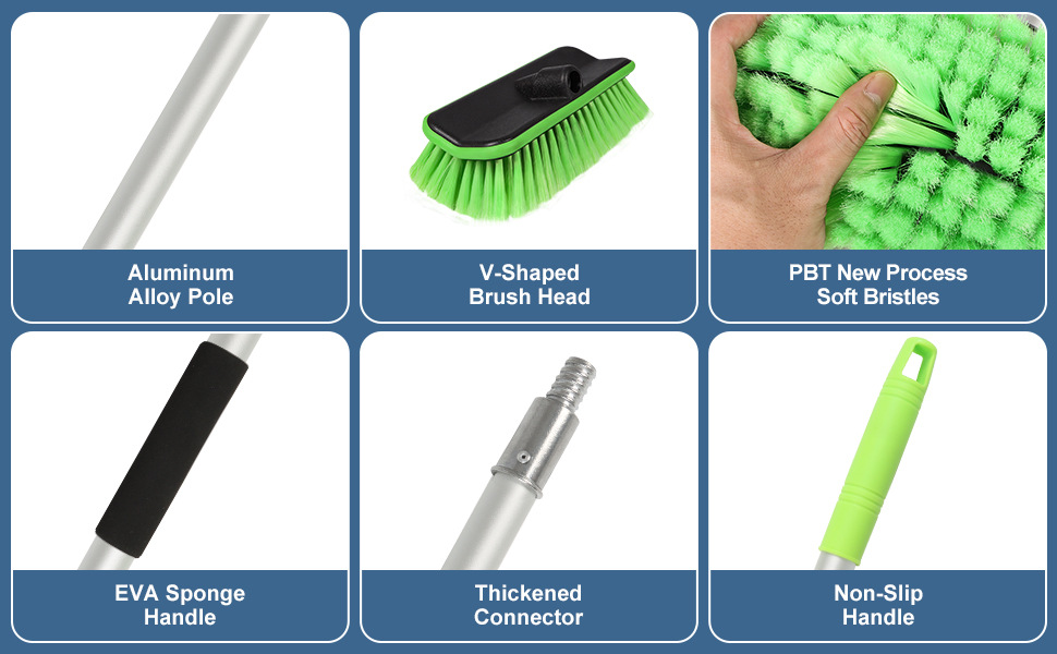 多种用途: 这款带延长手柄的洗车刷可以多种用途,非常适合清洁太阳能电池板、房屋外部、卡车、SUV、船、地板、露台、浴室、除雪等! 这款汽车刷可轻松清洁并有效地去除各种表面的顽固污渍和堆积物