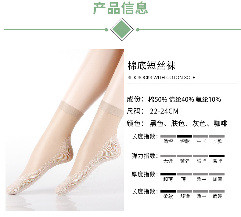 짧은 양말, 얇은 양말, 내마모성, 걸림 방지, 살색 스타킹, 보이지 않는 여성용 통기성 검정색 면 바닥 크리스탈 양말, 봄 여름스토어 가기