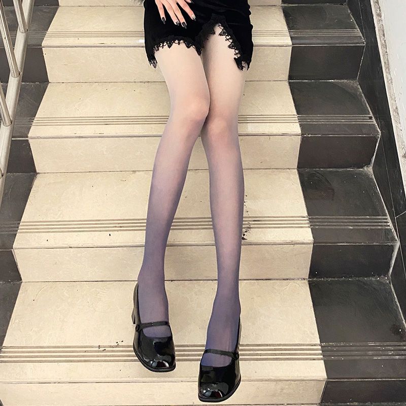Ys 검정과 회색 그라데이션 스타킹 핫 소녀 나이트 클럽 얇은 흰색 녹색 보라색 파란색 섹시한 검은 실크 팬티 스타킹스토어 가기