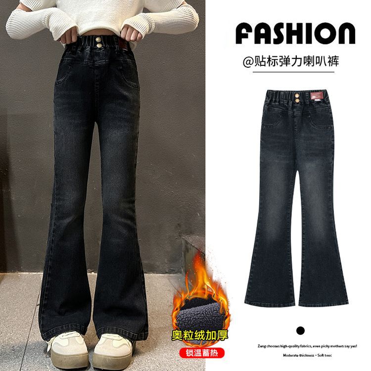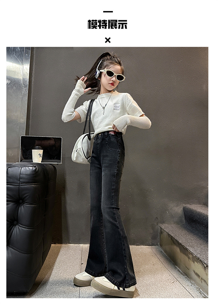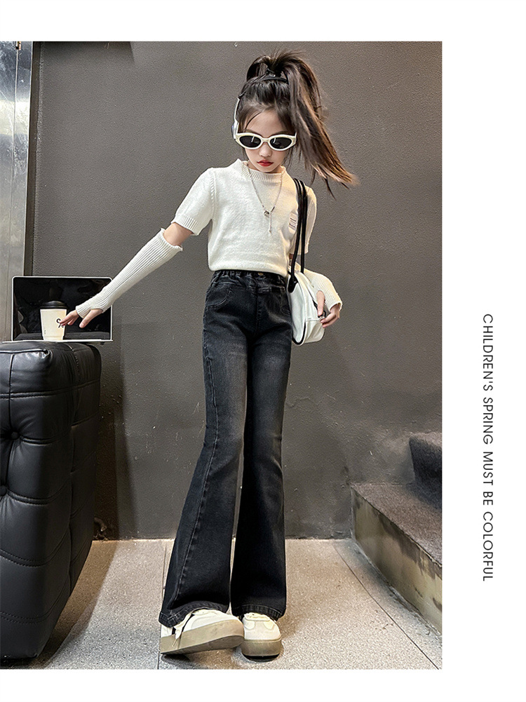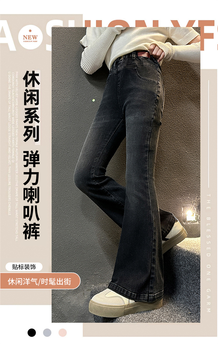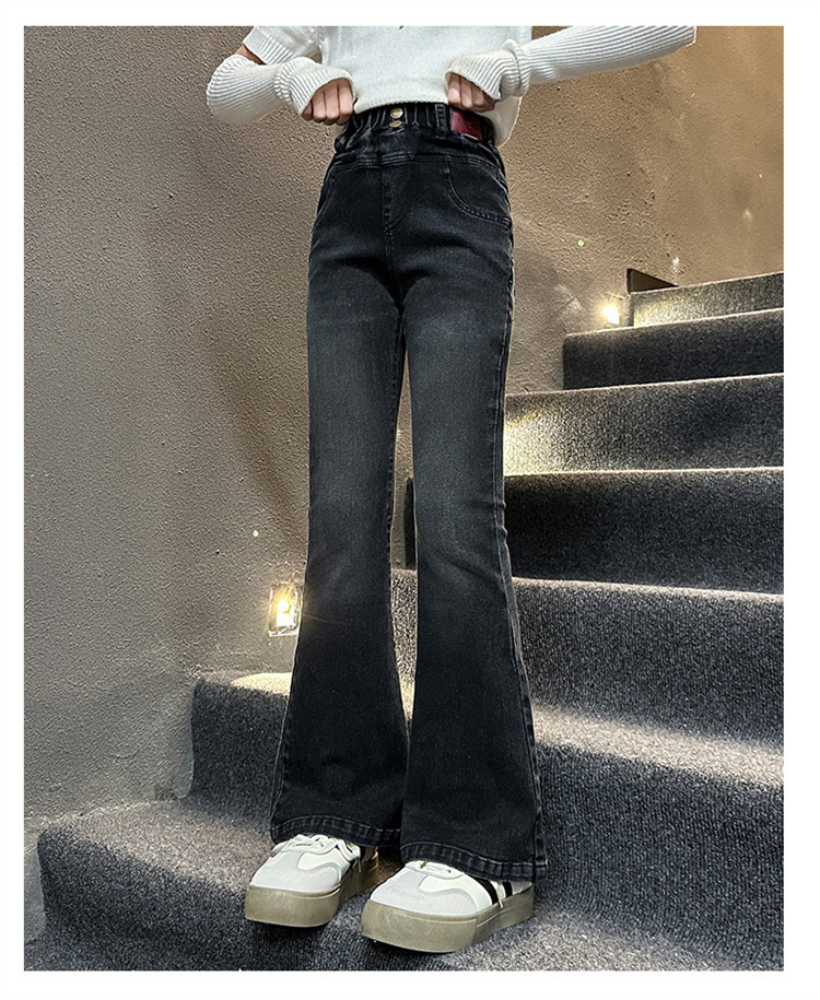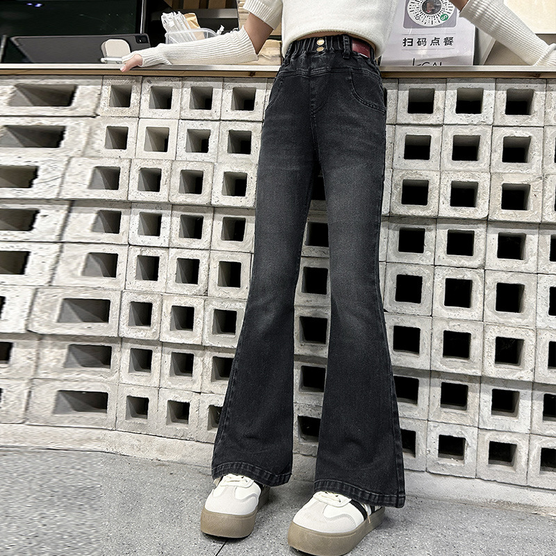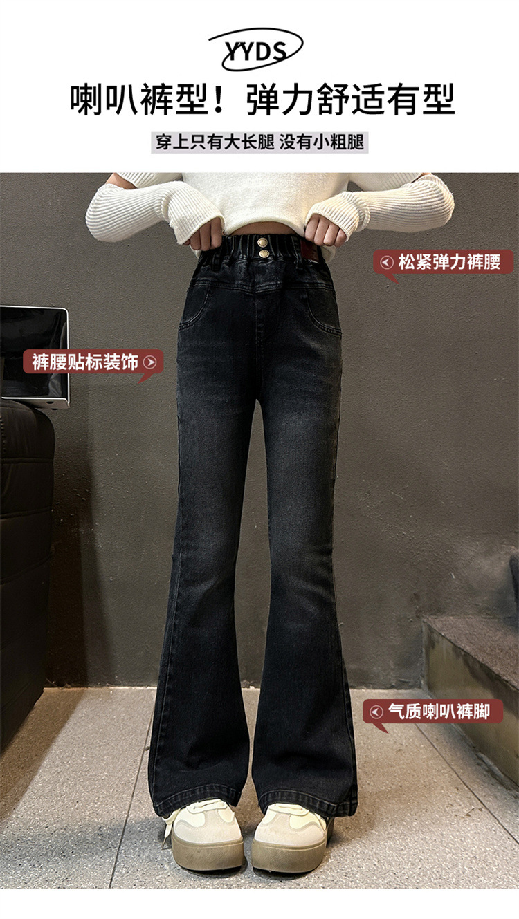 여아 바지 봄, 가을 겉옷 2025 새로운 스타일 중대형 아동용 스트레치 청바지 봄 아동용 플레어 바지