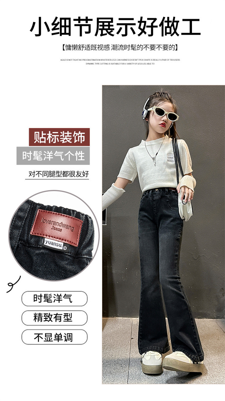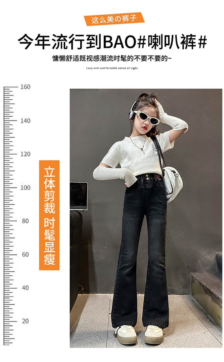 여아 바지 봄, 가을 겉옷 2025 새로운 스타일 중대형 아동용 스트레치 청바지 봄 아동용 플레어 바지스토어 가기