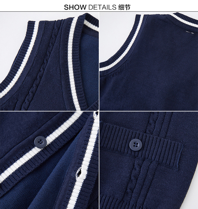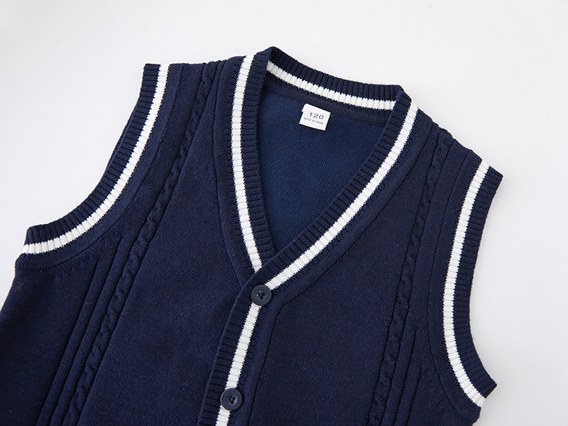 Etsy 크로스 보더 봄, 가을 트위스트 가짜 포켓 중대형 아동 스웨터 조끼 학교 유니폼 도매 소년 소녀 니트 조끼스토어 가기