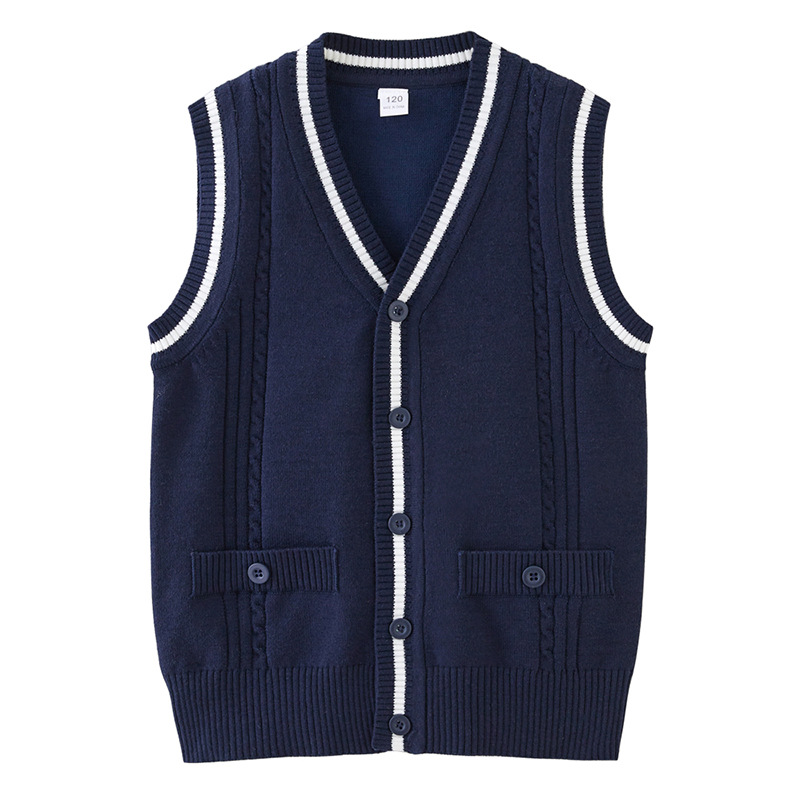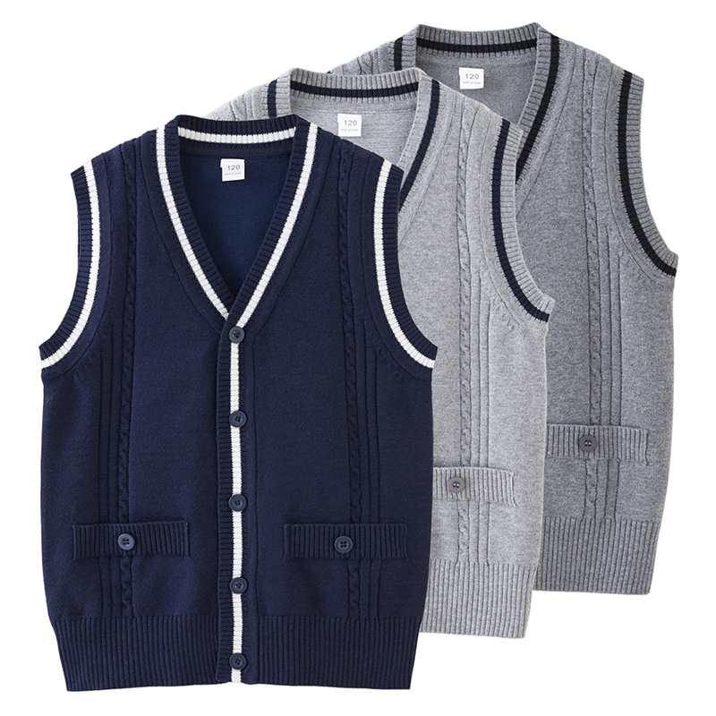 Etsy 크로스 보더 봄, 가을 트위스트 가짜 포켓 중대형 아동 스웨터 조끼 학교 유니폼 도매 소년 소녀 니트 조끼