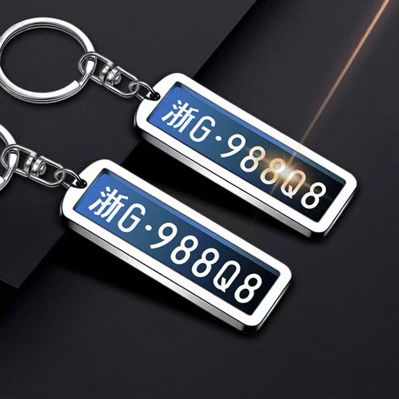인기있는 번호판 키 체인 자동차 분실 방지 펜던트 레이저 맞춤형 디지털 번호판 세련되고 창의적인 남성용 분실 방지스토어 가기