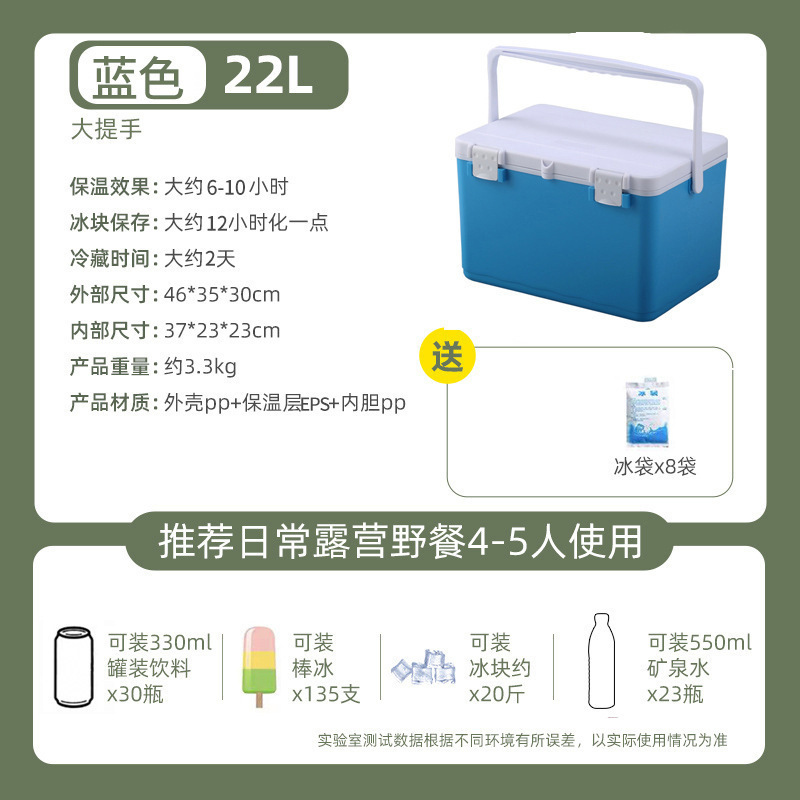 • 36시간 동안 보냉 효과가 지속되는 두꺼워지고 업그레이드된 22L 파란색 대형 손잡이, 무료 아이스팩 6개