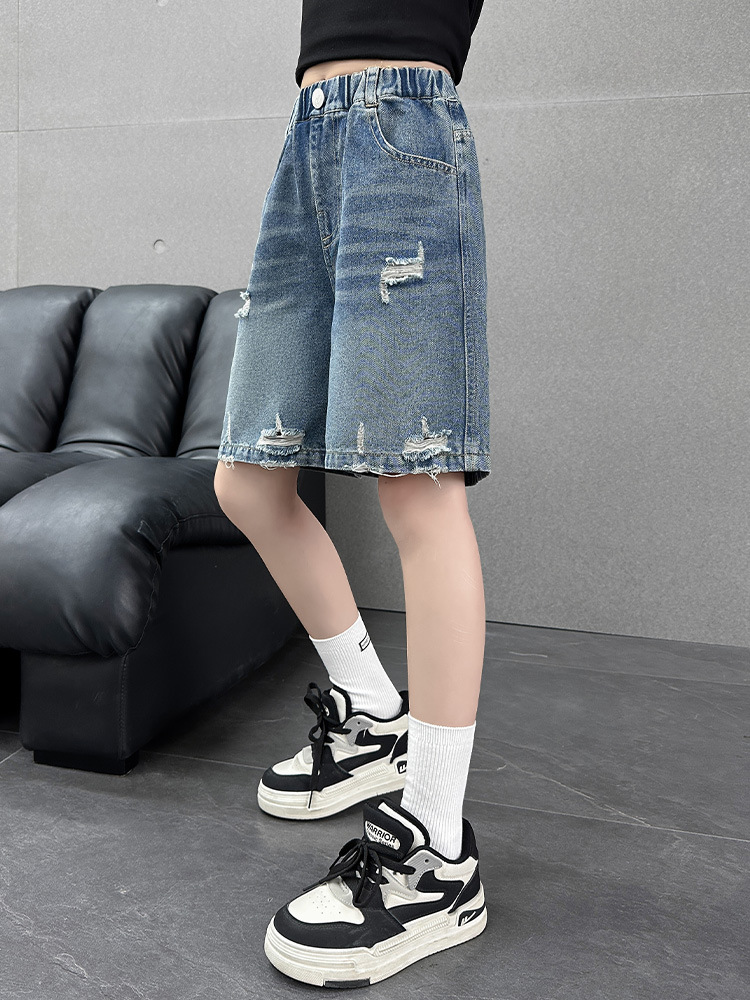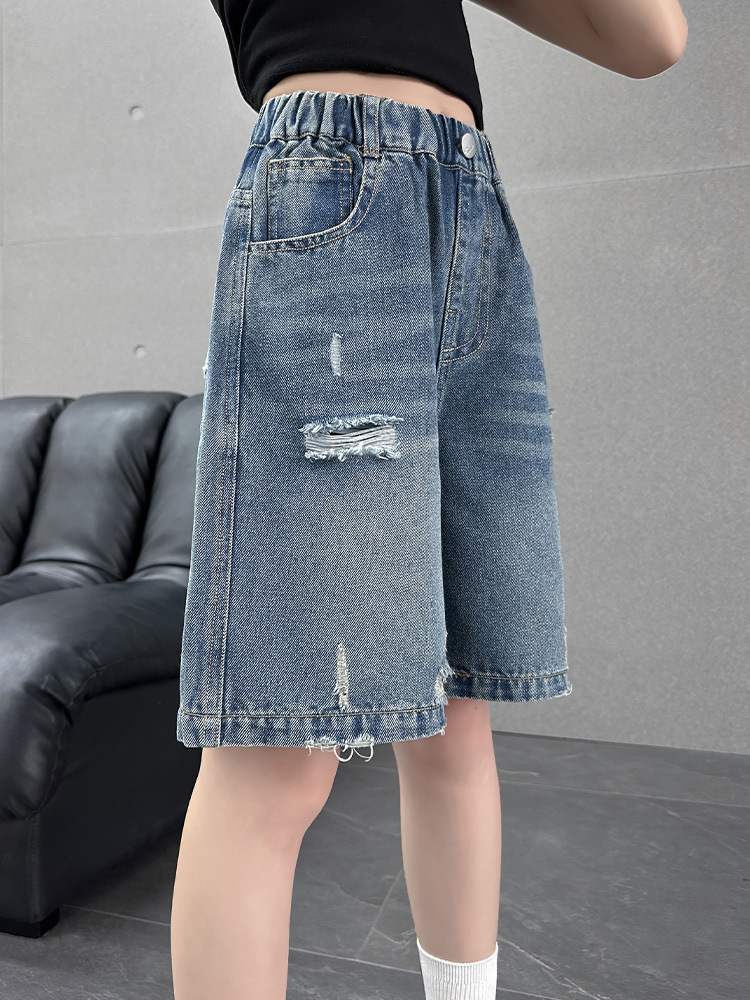 여아 데님 반바지 여름 2025 새로운 스타일 아동용 찢어진 5부 바지 여름 얇은 바지스토어 가기