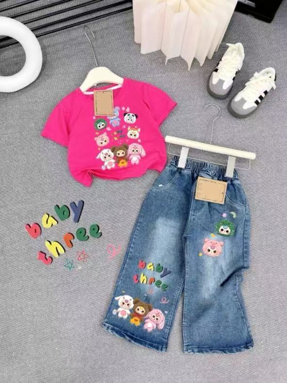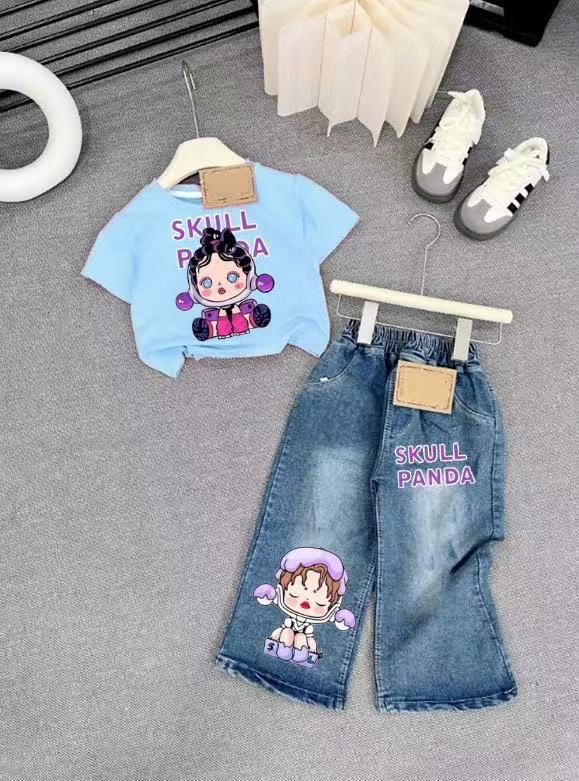 女童套装牛仔裤2025新款儿童洋气阔腿裤中大童长裤直筒裤