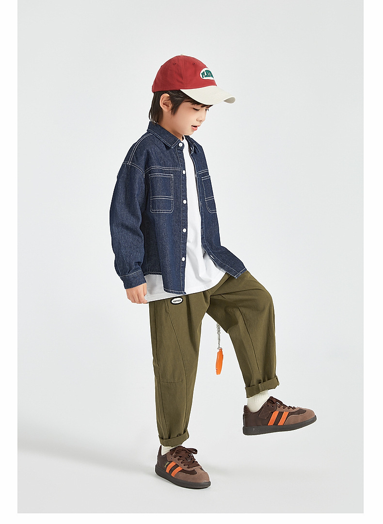 Duojia 소년 워시 데님 셔츠 2025 봄, 가을 어린이 복고풍 느슨한 얇은 재킷 편안한