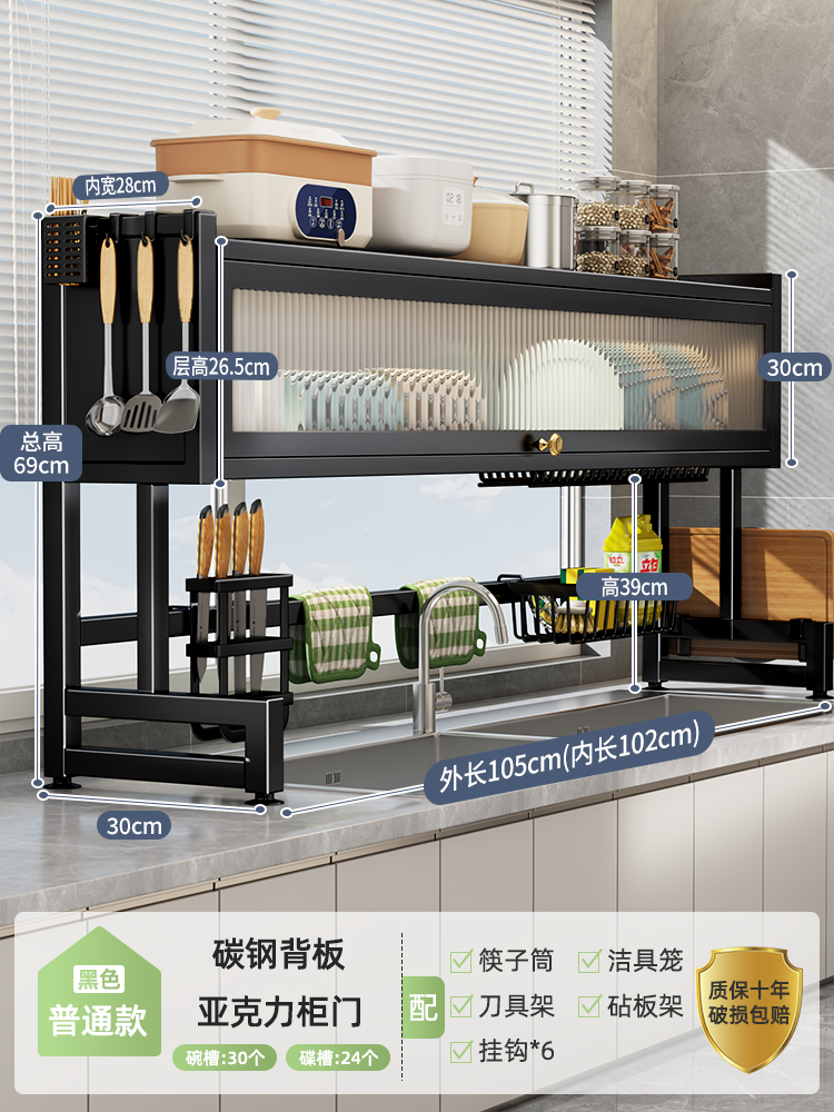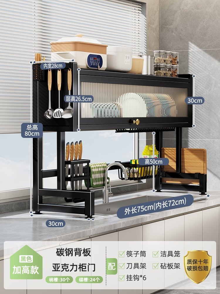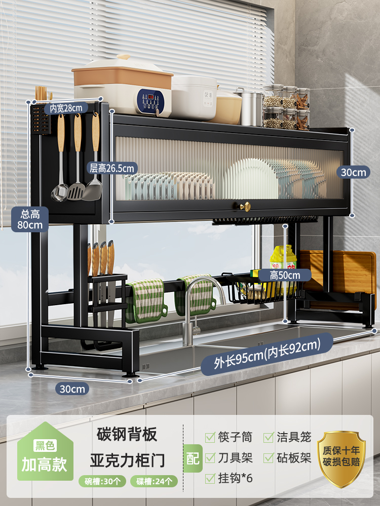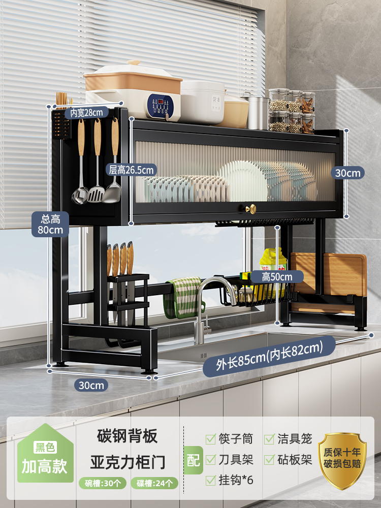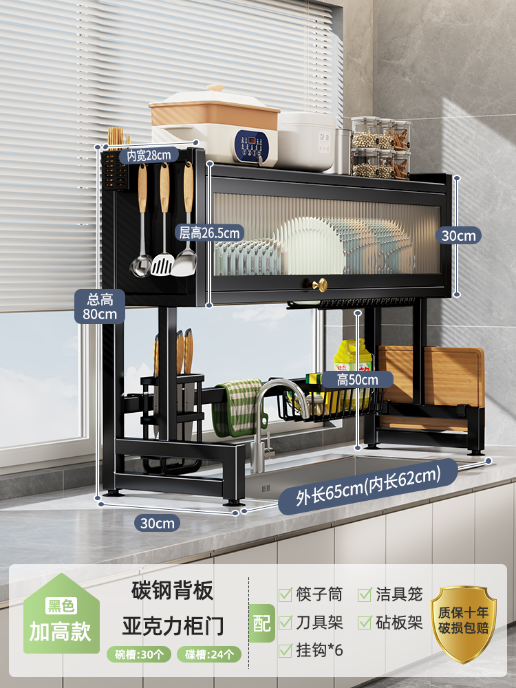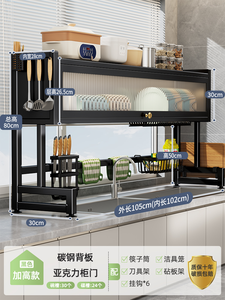 • 다음은 높이가 더 높고 시야가 더 넓은 높은 검정색(총 높이 80CM)의 완전한 세트입니다. [상단 캐비닛이 없는 주방에 적합]