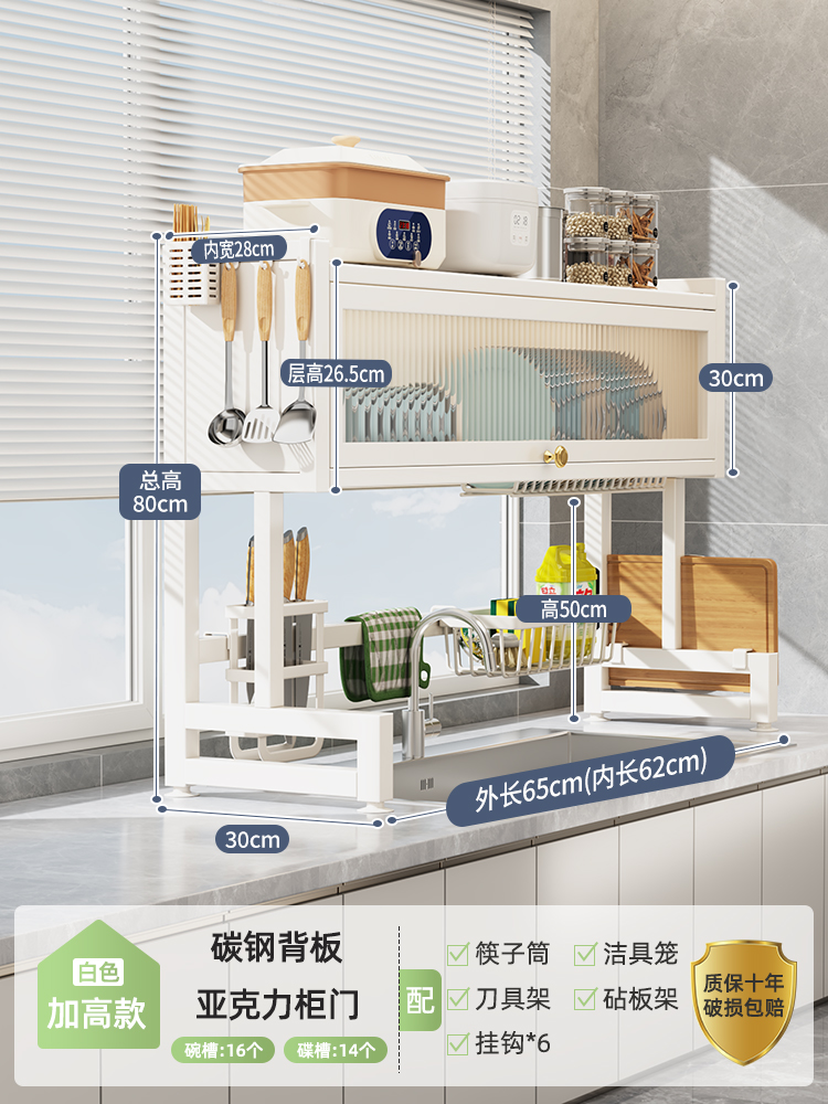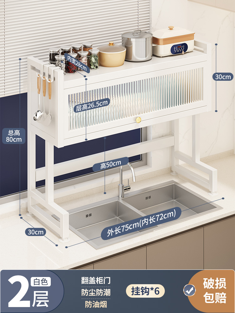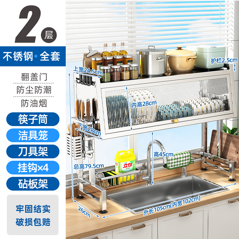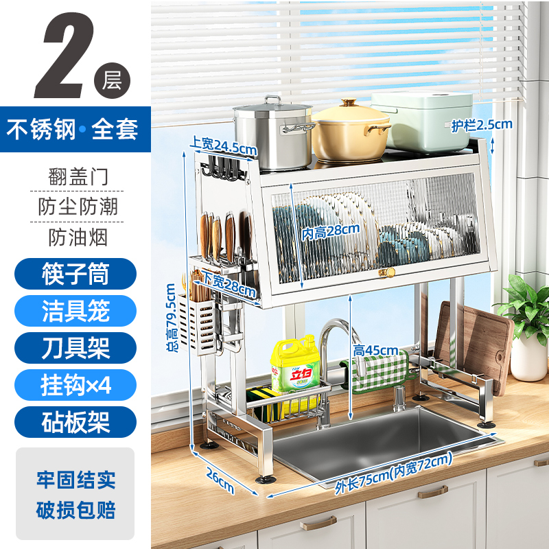 주방 스테인레스 스틸 싱크대 수납 선반 식기 세척 싱크대 방진 그릇 조리대 수납 캐비닛 다기능 배수 선반스토어 가기