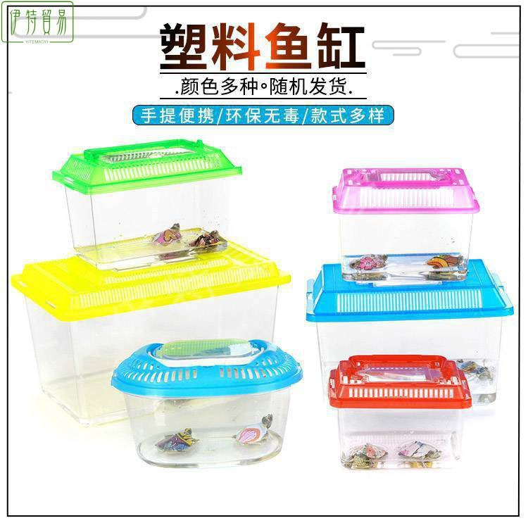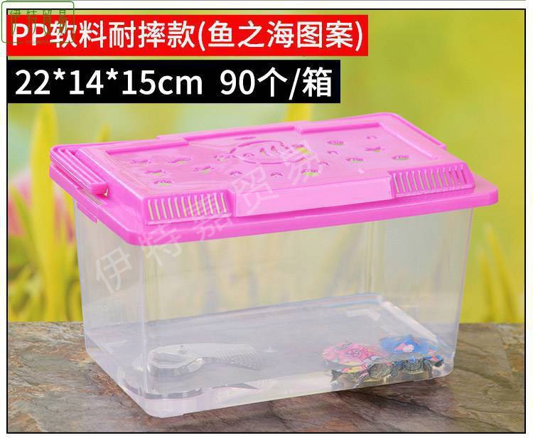 작은 거북이 수조, 일체형 금붕어 수조, 게 애완동물 투명 상자, 플라스틱 휴대용 통기성 작은 물고기스토어 가기